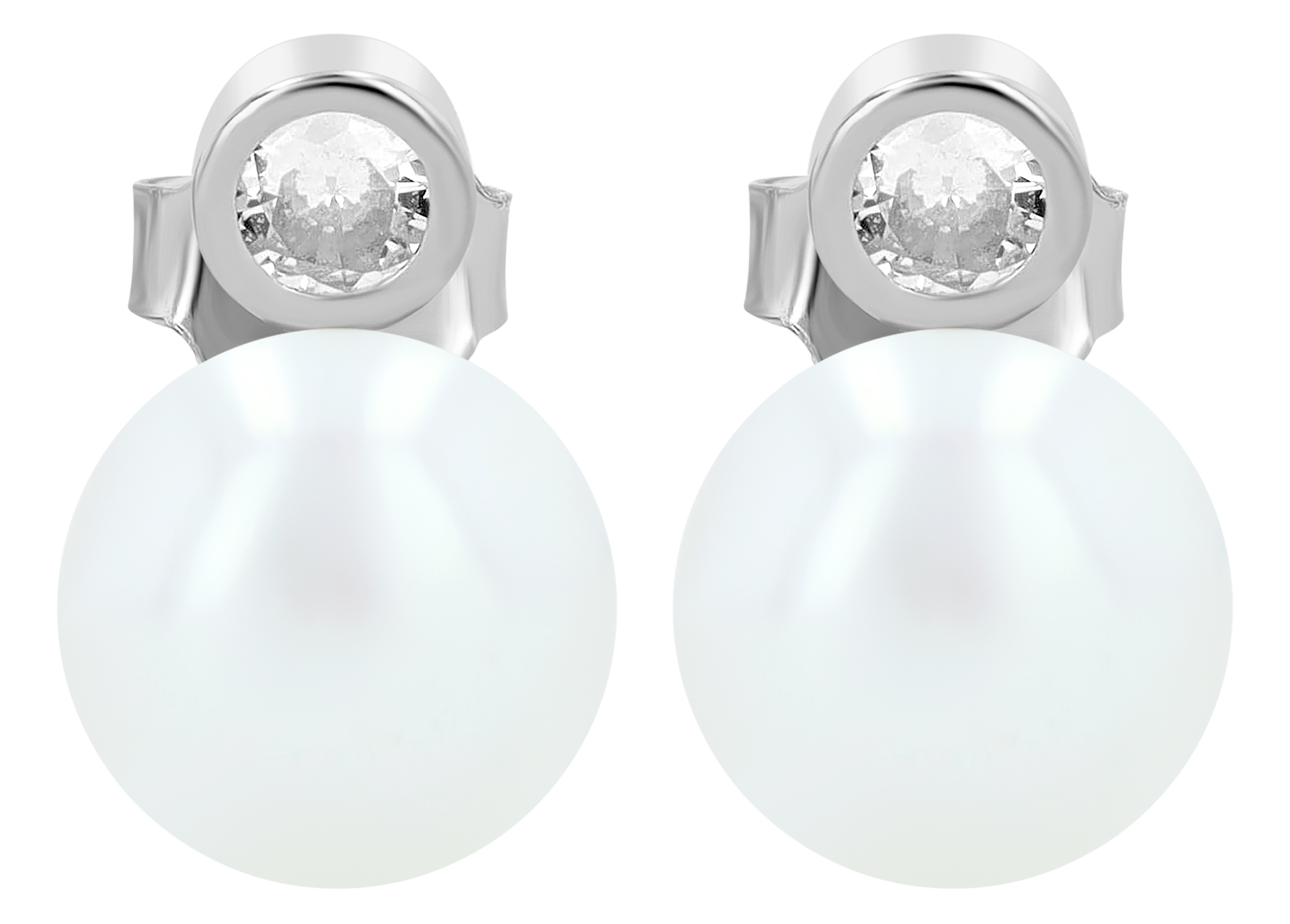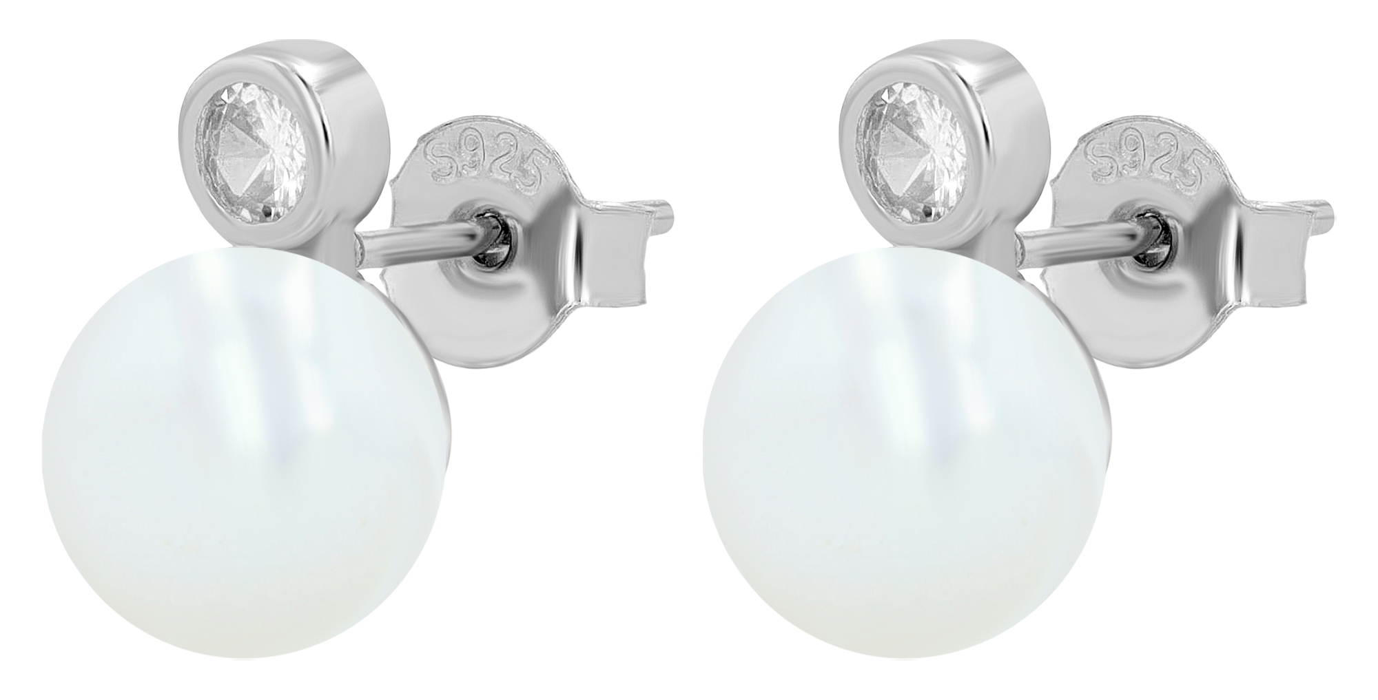 Die glanzvollen Ohrstecker aus 925er Sterling Silber mit einer Gesamthöhe von 10 mm sind besetzt mit einer echten Süßwasserperle, Durchmesser 6 mm, und einem funkelnden Zirkonia-Stein in Krappenfassung. Verfügbar in 2 Farbvarianten - klassisch silberfarben oder warm vergoldet - ist dieses Accessoires ein Must-have für Liebhaber von zeitloser Eleganz und moderner Raffinesse. Der Steckverschluss bietet einen hohen und sicheren Tragekomfort, durch die Rhodinierung bleibt der Glanz der Schmuckstücke erhalten. Perfekt als besonderes Geschenk für jeden Anlass.