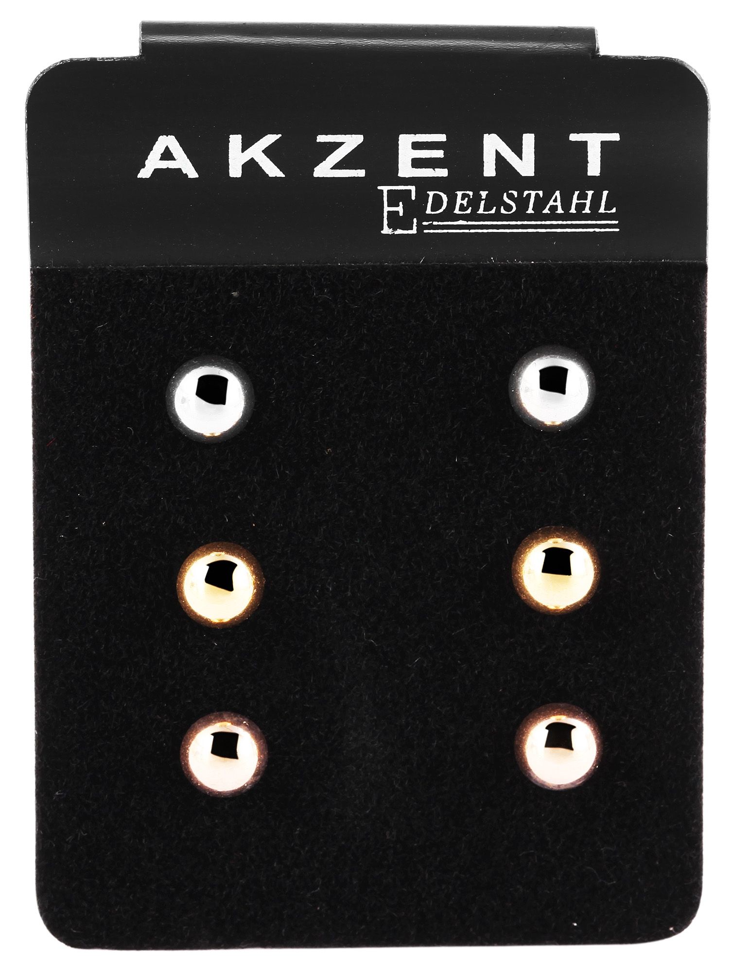 Productinformatie "Akzent Edelstahl Ohrstecker im Set, IP beschichtet, roségold-, gold- und silberfarbig"