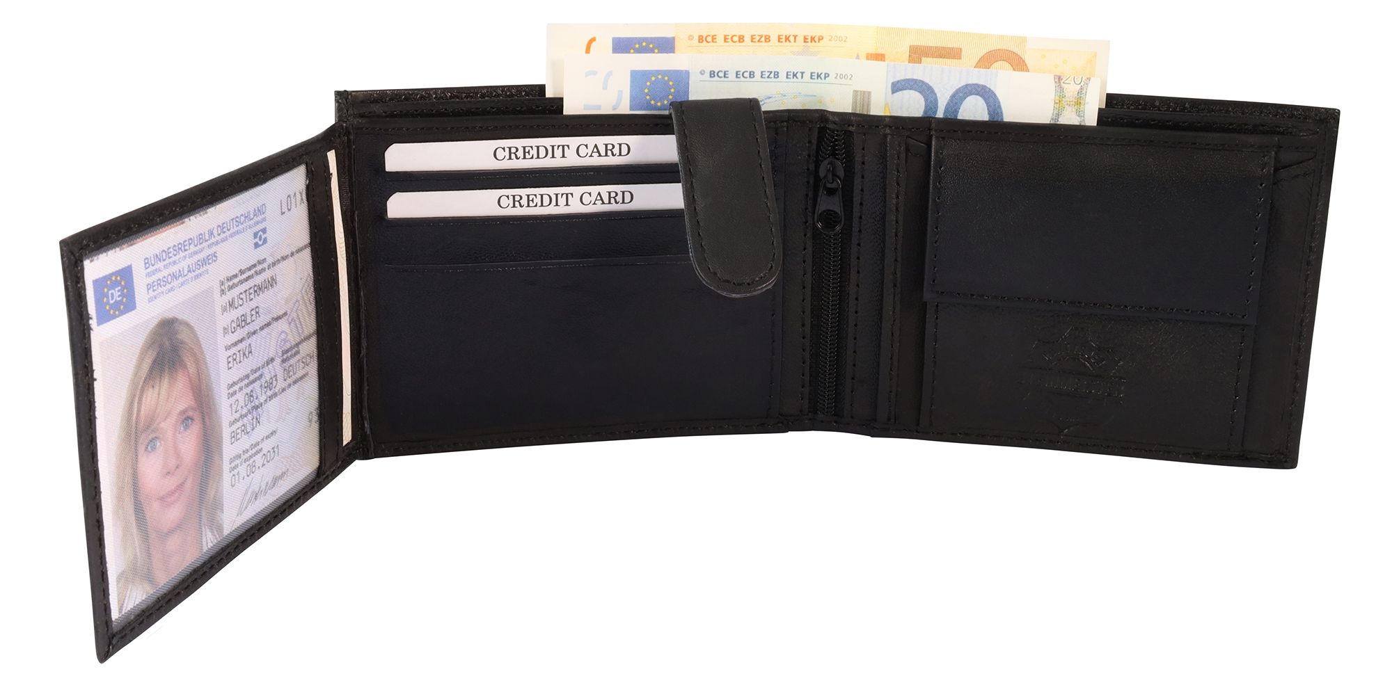 Twee biljetvakjes, een muntvakje, vijf creditcardvakjes en een ID-kaartvak zorgen voor een compromisloze organisatie. Dankzij de drukknoopsluiting aan de binnenkant blijft alles veilig opgeborgen. Een extra ritsvak aan de binnenkant en twee steekvakken bieden nog meer voordelen.