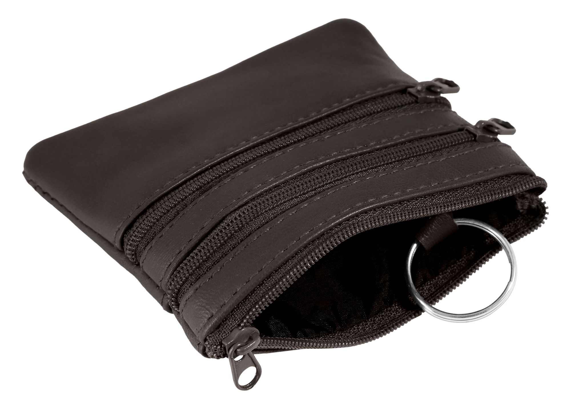 Der Schlüsselbeutel der Marke Leonardo Verrelli wurde aus echtem Schafsleder hergestellt. Aufgrund des hochwertigen und natürlichen Materials ist das Etui besonders langlebig, widerstandsfähig und sehr geschmeidig. Die Naht im Außen- und Innenbereich sorgt für gute Stabilität und Haltbarkeit. An den Schlüsselbeutel ist ein Schlüsselring mit einem Durchmesser von 25 mm angebracht. Dieser ist im Inneren des Beutels über einen ca. 4 cm lange Lederriemen mit dem Schlüsselbeutel verbunden. Der Ring eignet sich hervorragend zum Anbringen von Schlüsseln oder Anhängern, aber auch zum Befestigen an Taschen oder Schlüsselbrettern. Das Schlüsseletui verfügt über ein Einsteckfach und drei Reißverschlussfächer außen. Das Etui hat eine Länge von 9.5 cm, eine Breite von 11 cm und eine Tiefe von 1 cm. Der Schlüsselbeutel ist perfekt um Schlüssel zu verstauen. Kleingeld, aber auch Karten können bequem untergebracht werden. Klein, aber mit großer Wirkung überzeugt das klassische Schlüsseletui.