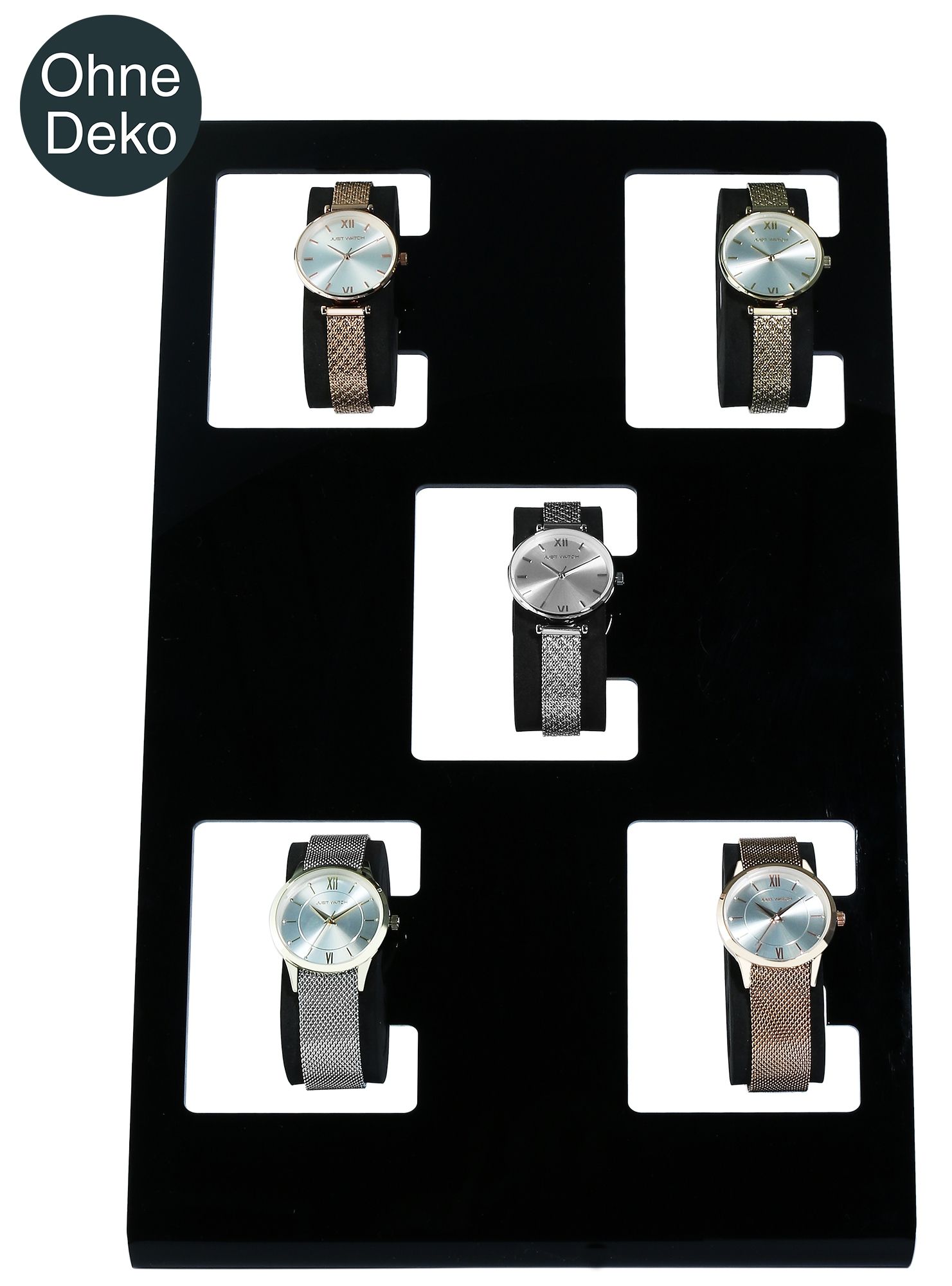 Productinformatie "Uhrendisplay für 5 Uhren (Dekoserie Shiny), Kunststoff, 37 cm, schwarz"