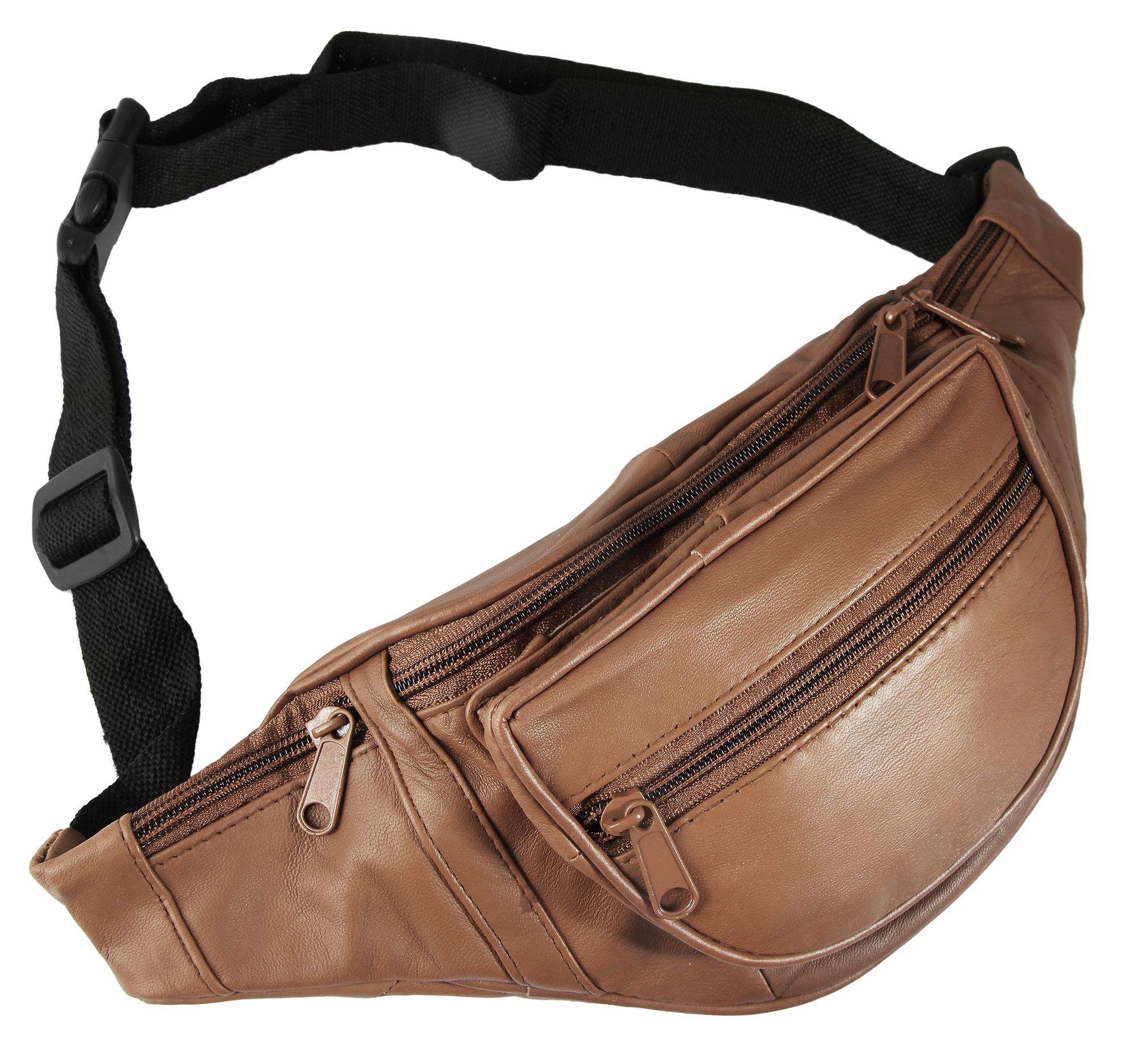Deze modieuze heuptas van het merk Leonardo Verrelli is gemaakt van echt schapenvacht en heeft een glad oppervlak. Dankzij het hoogwaardige en natuurlijke materiaal is de tas bijzonder duurzaam, resistent en zeer soepel. Hij past comfortabel rond de heupen met een stevige zwarte polyester heupband en kan worden geopend en gesloten met een zwarte kunststof gesp. De riem is 3 cm breed en kan worden versteld tot een minimale lengte van 50 cm en een maximale lengte van 90 cm. De multifunctionele en superpraktische tas heeft een geweldige indeling en biedt met zijn drie ritsvakken van verschillende grootte voldoende opbergruimte voor alle belangrijke spullen die tijdens het dragen dicht op het lichaam zitten. Je kunt ook extra spullen opbergen in twee kleine ritsvakken aan de buitenkant van de riem. Dit accessoire is de perfecte metgezel voor het dagelijks leven en veel verschillende activiteiten, zoals wandelen, winkelen of fietsen. De afmetingen resulteren uit een lengte van 40 cm, een breedte van 15,5 cm en een diepte van 6 cm in ongevulde toestand.