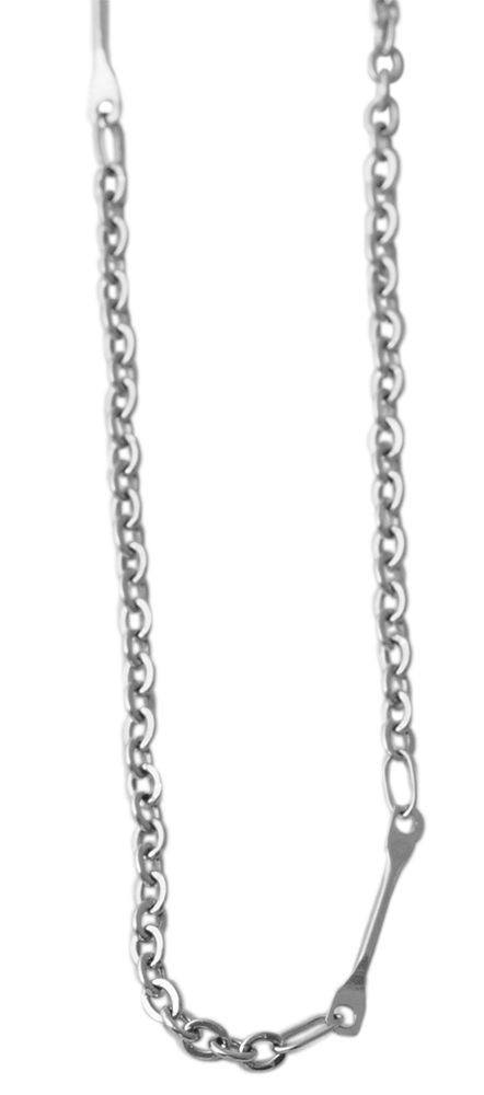 Die silberfarbene Halskette der Marke Akzent ist aus Edelstahl im Ankermuster gefertigt. Zusätzlich sind in gleichmäßigen Abständen längliche Edelstahlelemente in die Halskette eingearbeitet. Diese sind ebenfalls silberfarben und verleihen dem Schmuckstück einen besonderen Look. Öffnen und schließen lässt sie sich mit einem silberfarbenen Karabinerhaken, der ebenfalls aus Edelstahl gefertigt ist. An das Ende der Kette ist eine 5 cm lange Verlängerungskette angebracht, die es ermöglicht, die Länge der Halskette um bis zu 5 cm zu variieren und sie so an jedes Outfit anpassen zu können. Sie hat eine Länge von 70 cm und die Materialstärke beträgt 2 mm. Durch das robuste Material und die hochwertige Verarbeitung verspricht die schlichte Halskette eine lange Lebensdauer.