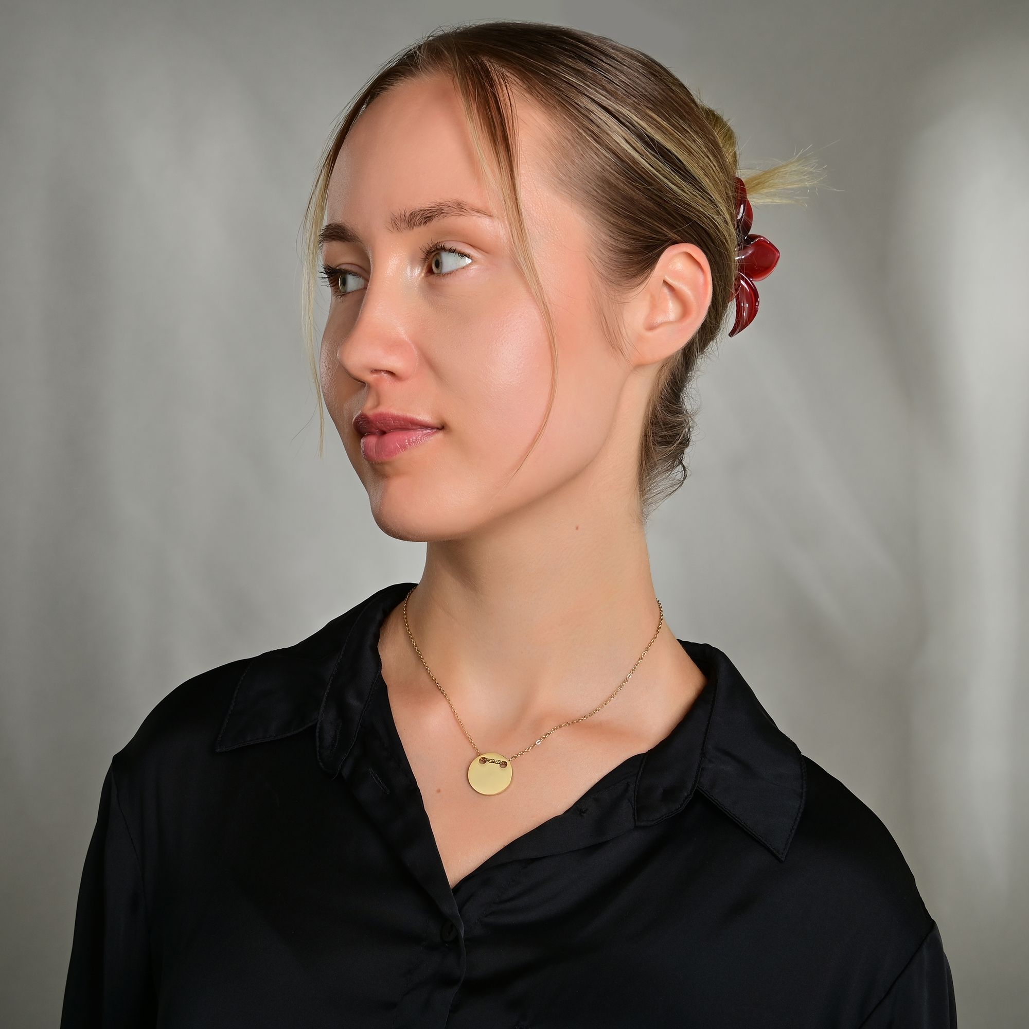 Productinformatie "Akzent Halskette mit gravurfähigem Münzanhänger, Edelstahl, Ionenplattiert, goldfarben"