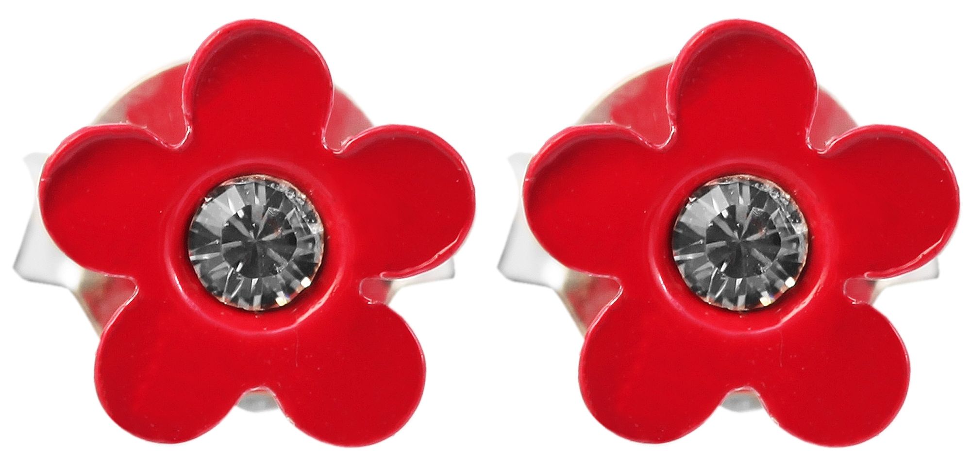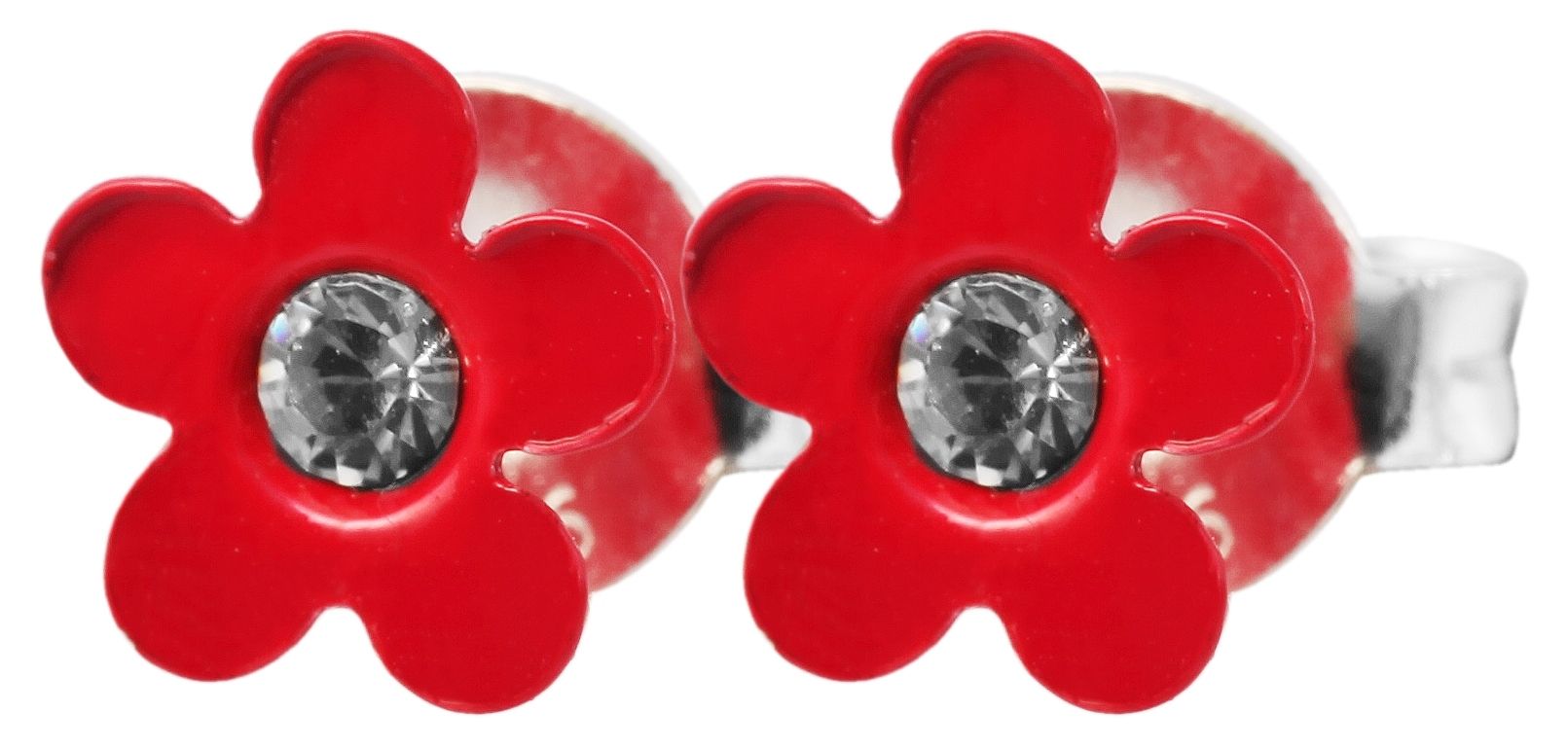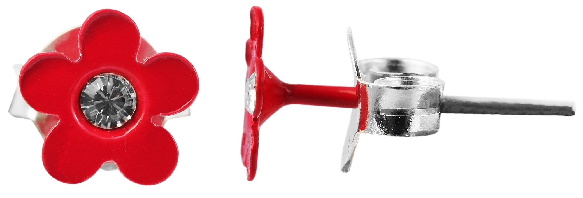Productinformatie "925/- Echt Silber Kinder Ohrstecker "Florette", Blume mit Similistein, rot"
