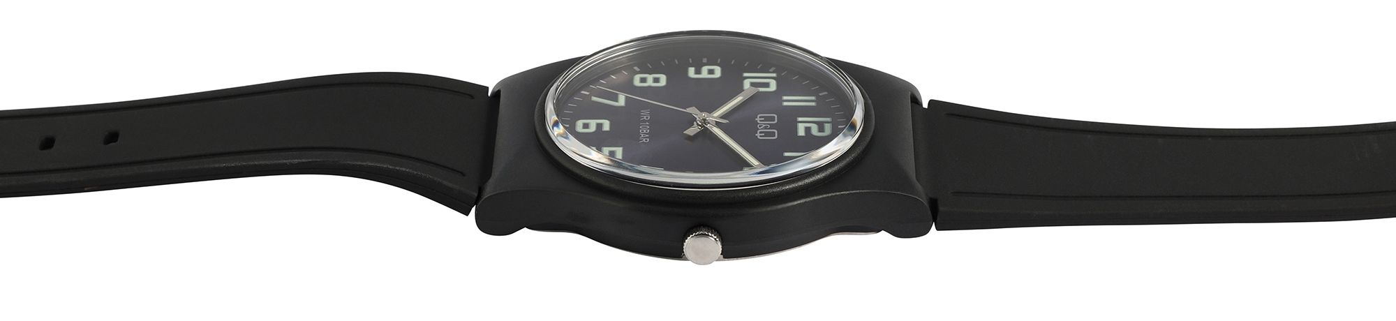 Diese Q&Q - by Citizen Watch Co. LTD Damenuhr (by Citizen Watch & Co., LTD) ist der ideale Begleiter für Frauen, die Wert auf Stil und Zuverlässigkeit legen. Das schwarze Silikonarmband bietet nicht nur optimalen Tragekomfort, sondern ist auch besonders strapazierfähig und flexibel. Mit einer Breite von 18 mm und einer Gesamtlänge von 25,5 cm passt es sich perfekt an das Handgelenk an und wird mit einer praktischen Dornschließe gesichert.