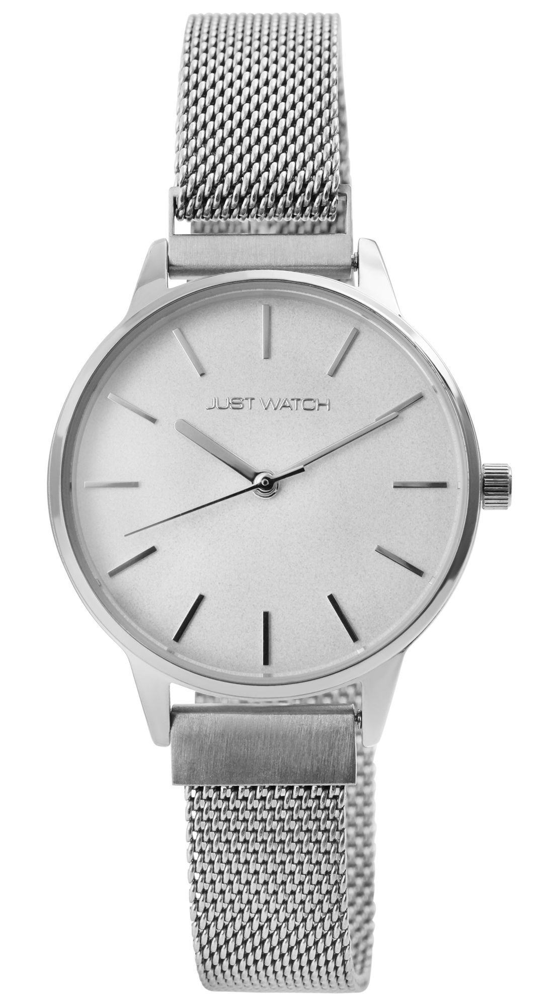 Productinformatie "Just Watch Damenuhr mit Milanesearmband, Magnetverschluss, silberfarben"