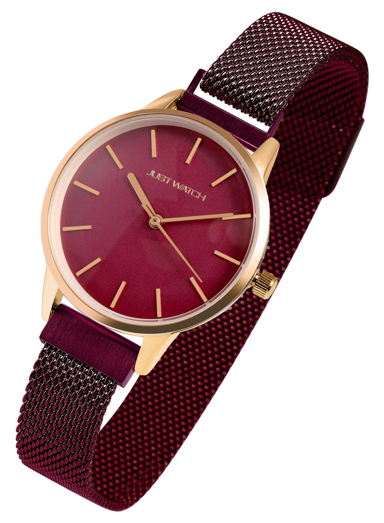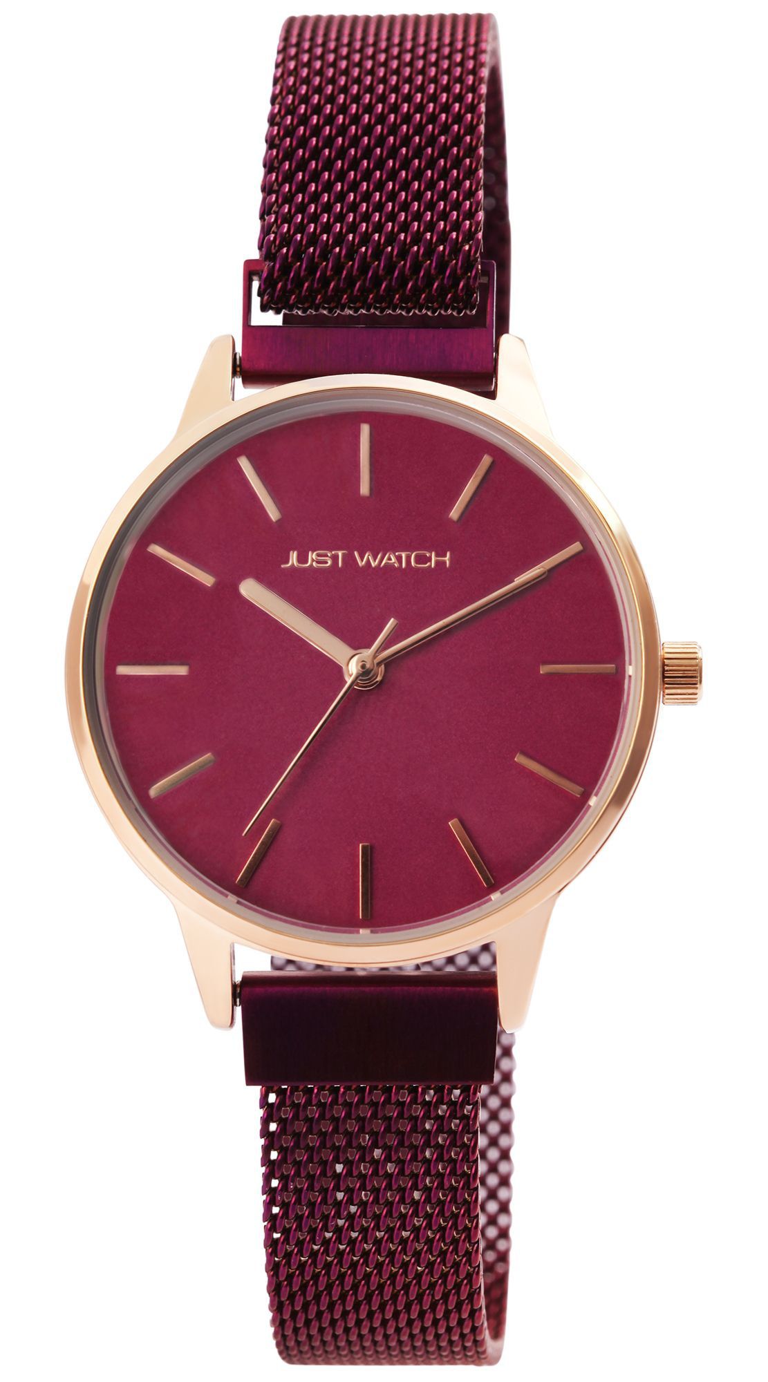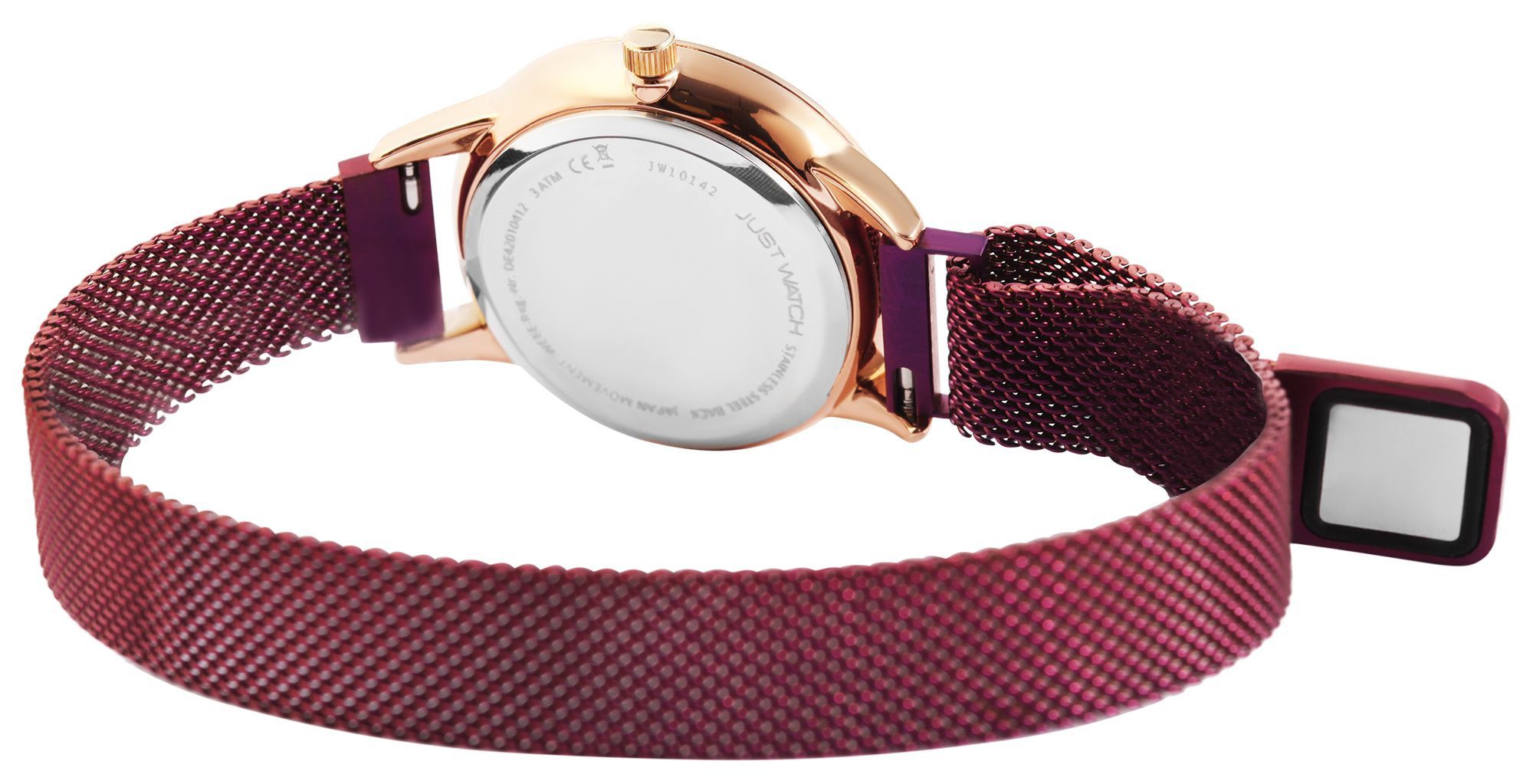 Productinformatie "Just Watch Damenuhr mit Milanesearmband, Magnetverschluss, rot/roségoldfarben"