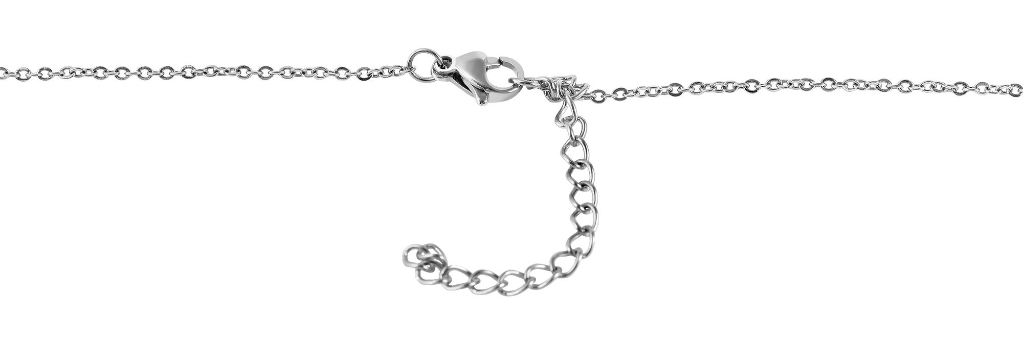 De ankerketting van het merk Akzent is gemaakt van roestvrij staal en is versierd met een ronde levensboom hanger, die ook gemaakt is van roestvrij staal. De hanger heeft een diameter van 25 mm en een dikte van 1 mm. Aan de ketting is ook een fonkelende strass-steen bevestigd met een diameter van 4 mm. De modieuze ketting kan ook worden geopend en gesloten met een roestvrijstalen karabijnhaak. Er is ook een verlengketting van 5 cm in de ketting verwerkt, waardoor de lengte met maximaal 5 cm kan worden gevarieerd en het sieraad aan elke outfit kan worden aangepast. De afmetingen resulteren uit een lengte van 45 + 5 cm en een dikte van 1 mm. De levensboom symboliseert het eeuwige leven. Het hoogwaardige materiaal zorgt ervoor dat de ketting een trouwe metgezel is die bij alle gelegenheden gedragen kan worden.