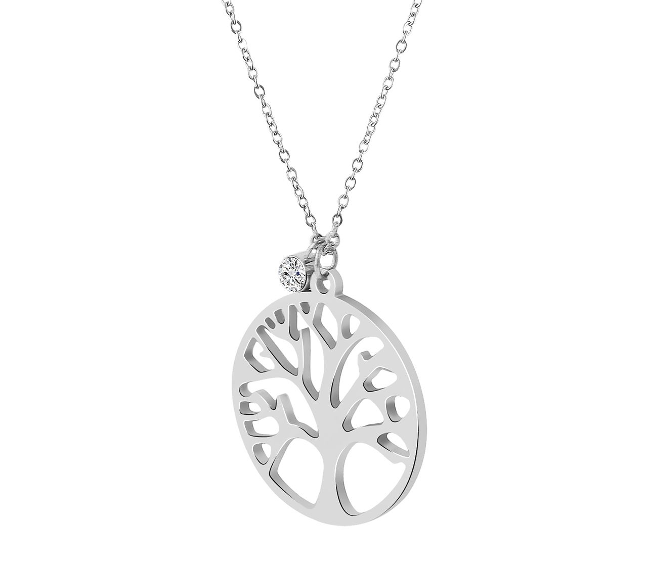 Productinformatie "Akzent Ankerkette aus Edelstahl, Lebensbaumanhänger, Similistein, silberfarben"