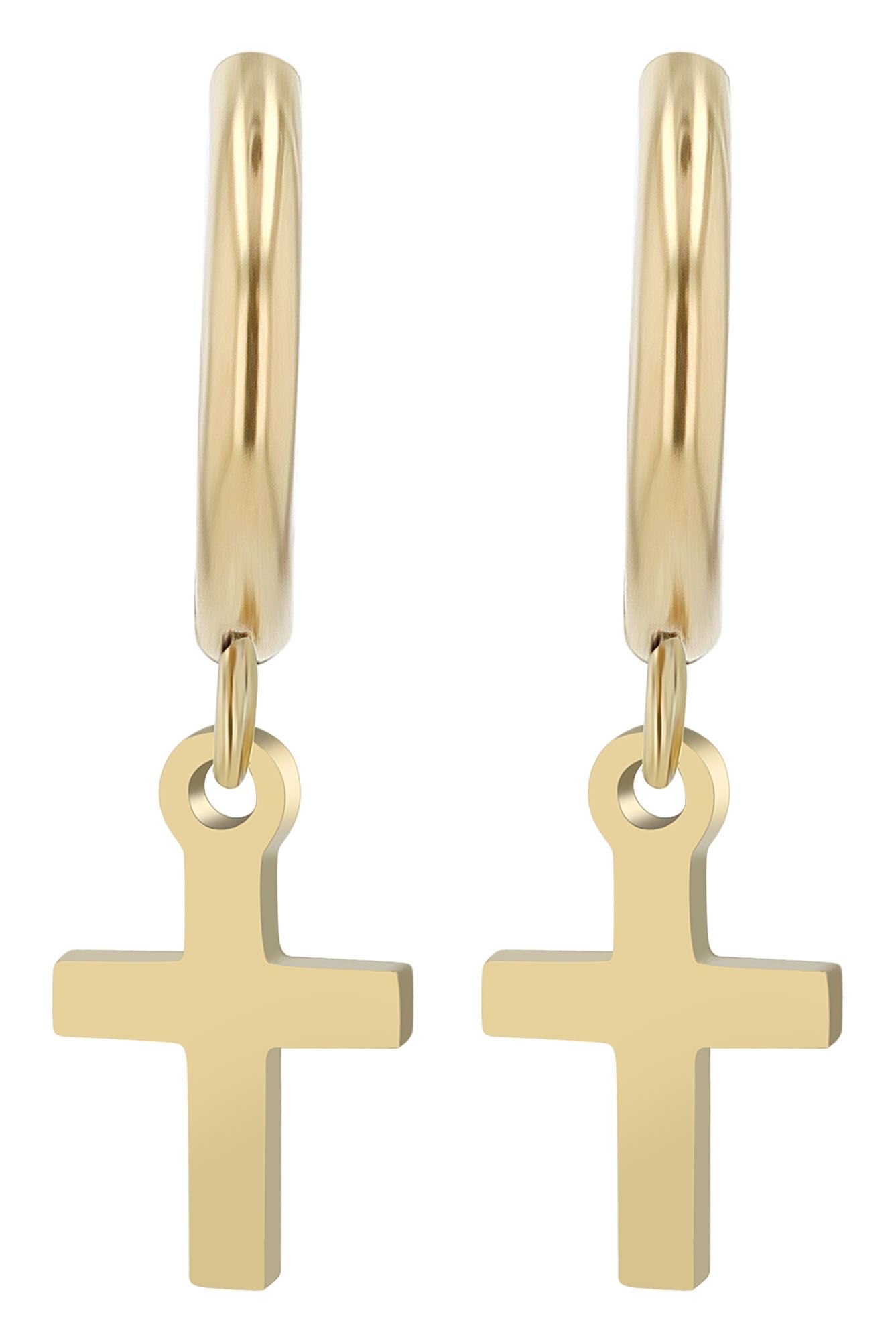 Productinformatie "Akzent Creolen "Duncan" mit Kreuzanhänger, Edelstahl, goldfarben"