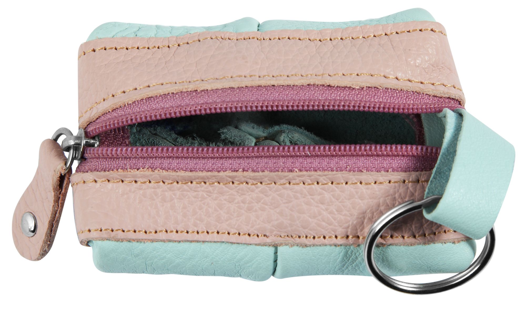 Productinformatie "Excellanc Schlüsselbeutel aus Echtleder, rosa/mintfarben"