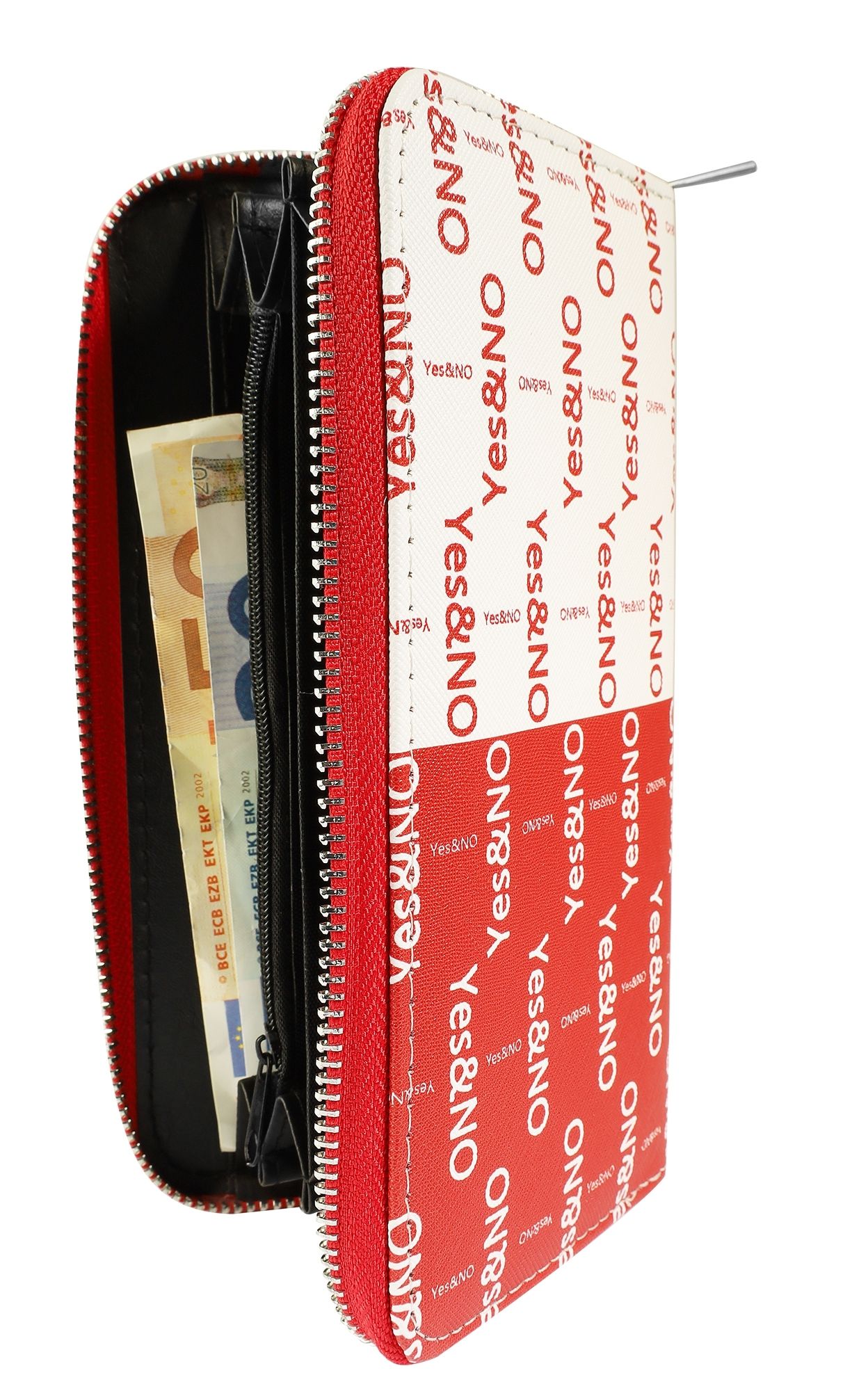Productinformatie "Damengeldbörse "Yes&No"aus Lederimitat, weiß/rot"