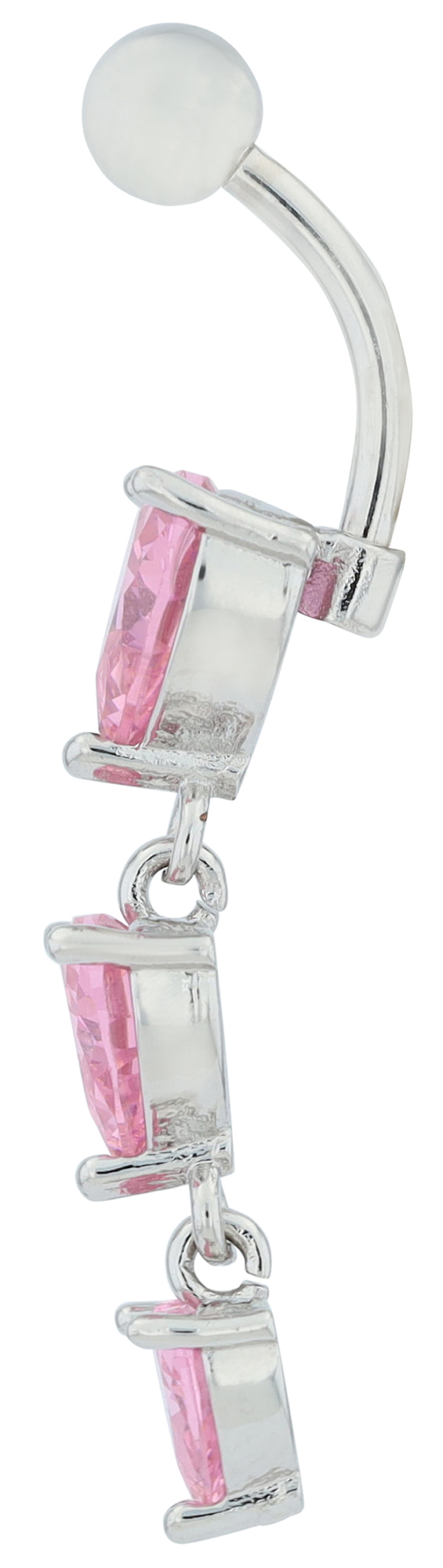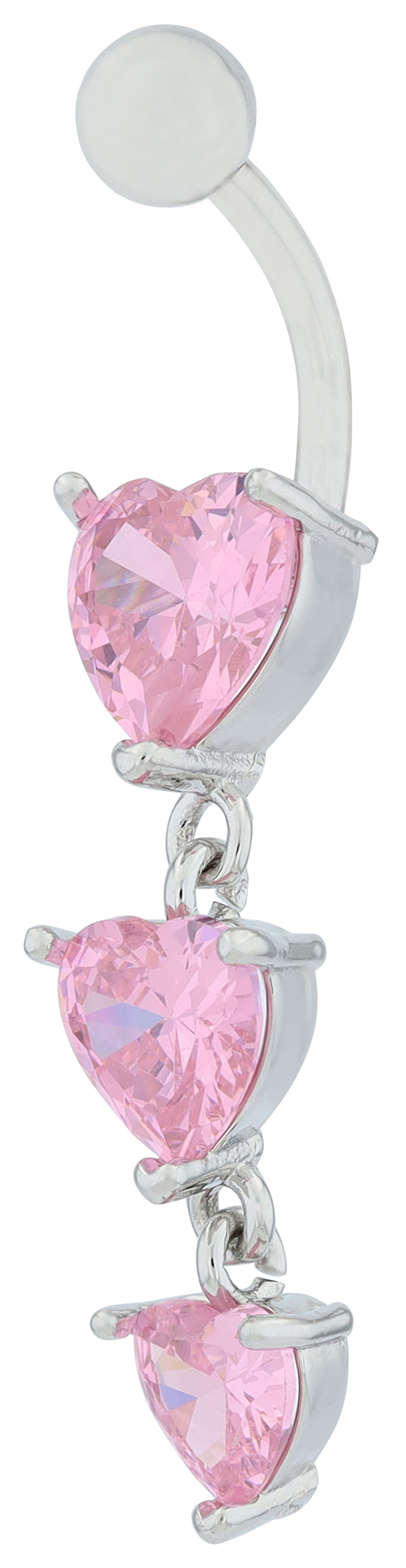 Dieses traumhaft schöne Bauchnabelpiercing aus hochwertigem Edelstahl begeistert mit seiner detailverliebten Gestaltung und den rosafarbenen Herzen. Zwei bewegliche Herzanhänger verleihen dem Schmuckstück eine verspielte Leichtigkeit, während die drei funkelnden, verlaufend gefassten Zirkoniasteine für glamouröse Highlights sorgen. Die Kombination aus gold- und silberfarbenem Finish macht das Piercing besonders vielseitig und harmoniert perfekt mit unterschiedlichen Schmuckstilen. Mit einer Gesamtlänge von 42 mm, einer Stablänge von 12 mm und einer Stabstärke von 2 mm bietet es optimalen Tragekomfort und sicheren Halt. Ein wunderschönes Accessoire für alle, die ihren Look mit einem Hauch von Romantik abrunden möchten.