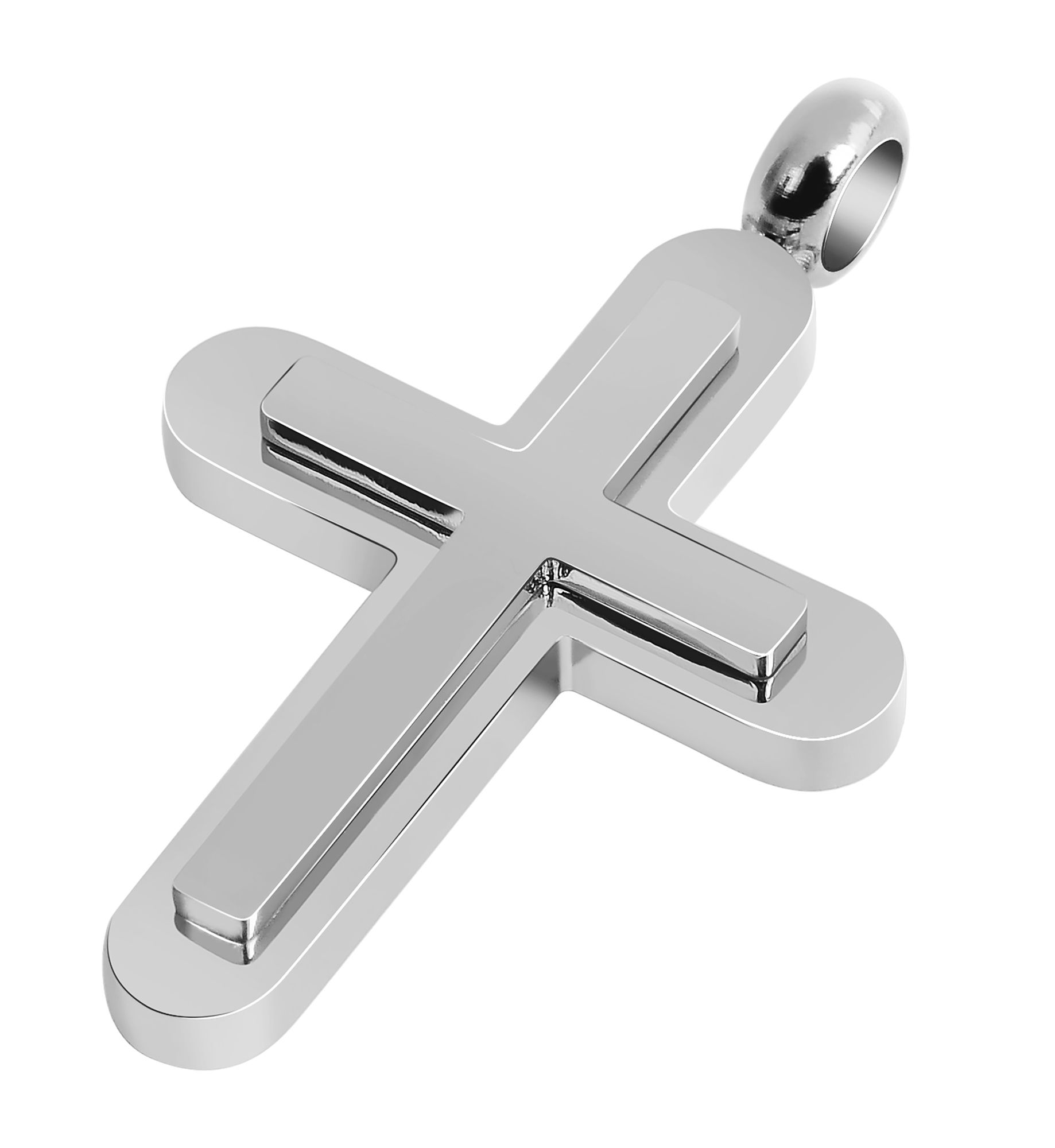 De Akzent merkhanger in de vorm van een kruis is gemaakt van roestvrij staal en wordt versterkt door een zogenaamde "twin look". Een ander roestvrijstalen kruis is bevestigd aan de kruishanger, waardoor deze goed opvalt. Het oppervlak is gepolijst, de achterkant is mat en kan worden aangepast met filigraan gravures. Dankzij het ovale oogje kan deze hanger gecombineerd worden met elk type halsketting. Hij heeft een lengte van 25 mm, een breedte van 17 mm en een materiaaldikte van 3 mm. Al met al is de kruis hanger een tijdloos accessoire dat bij talloze gelegenheden cadeau gegeven kan worden. Bijvoorbeeld voor de communie, een verjaardag of Kerstmis.