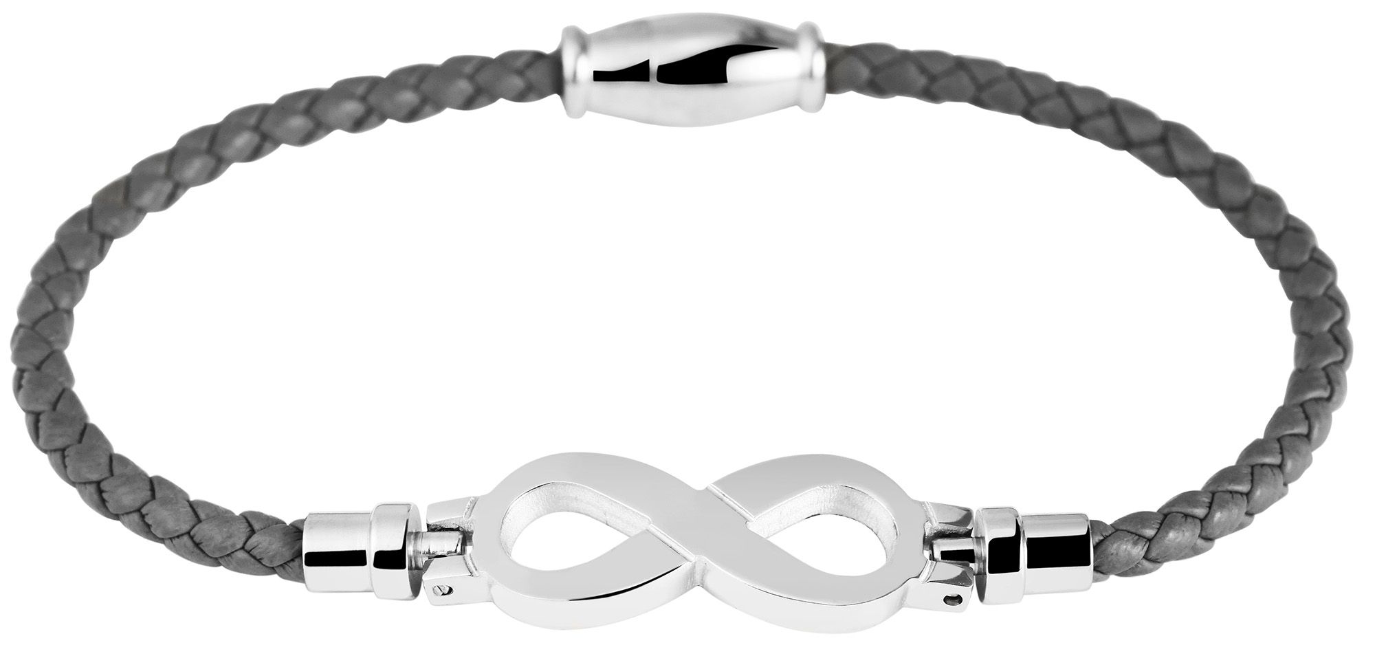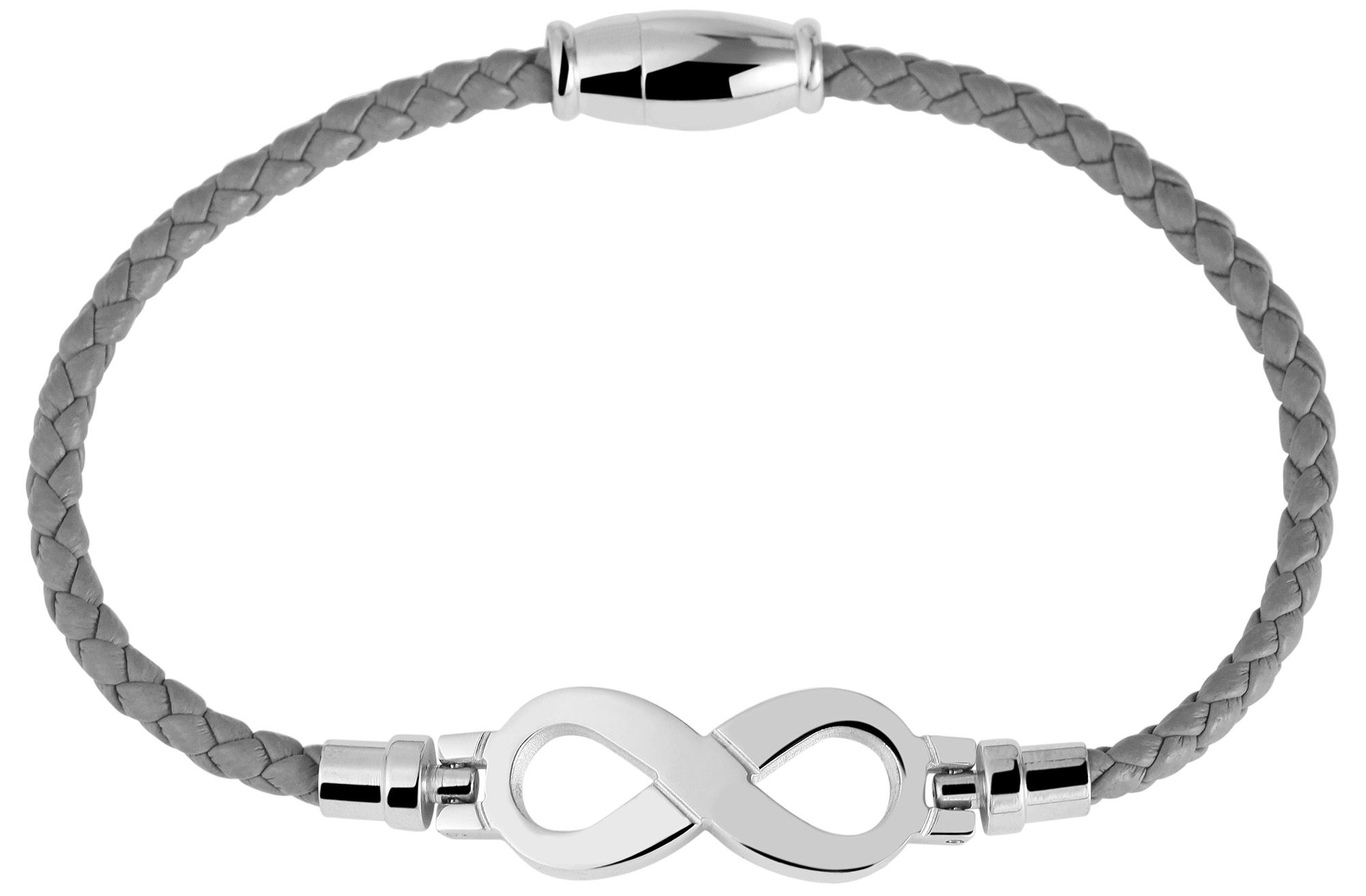 Productinformatie "Akzent Armband aus Lederimitat mit Unendlichkeitszeichen aus Edelstahl, grau/silberfarben"