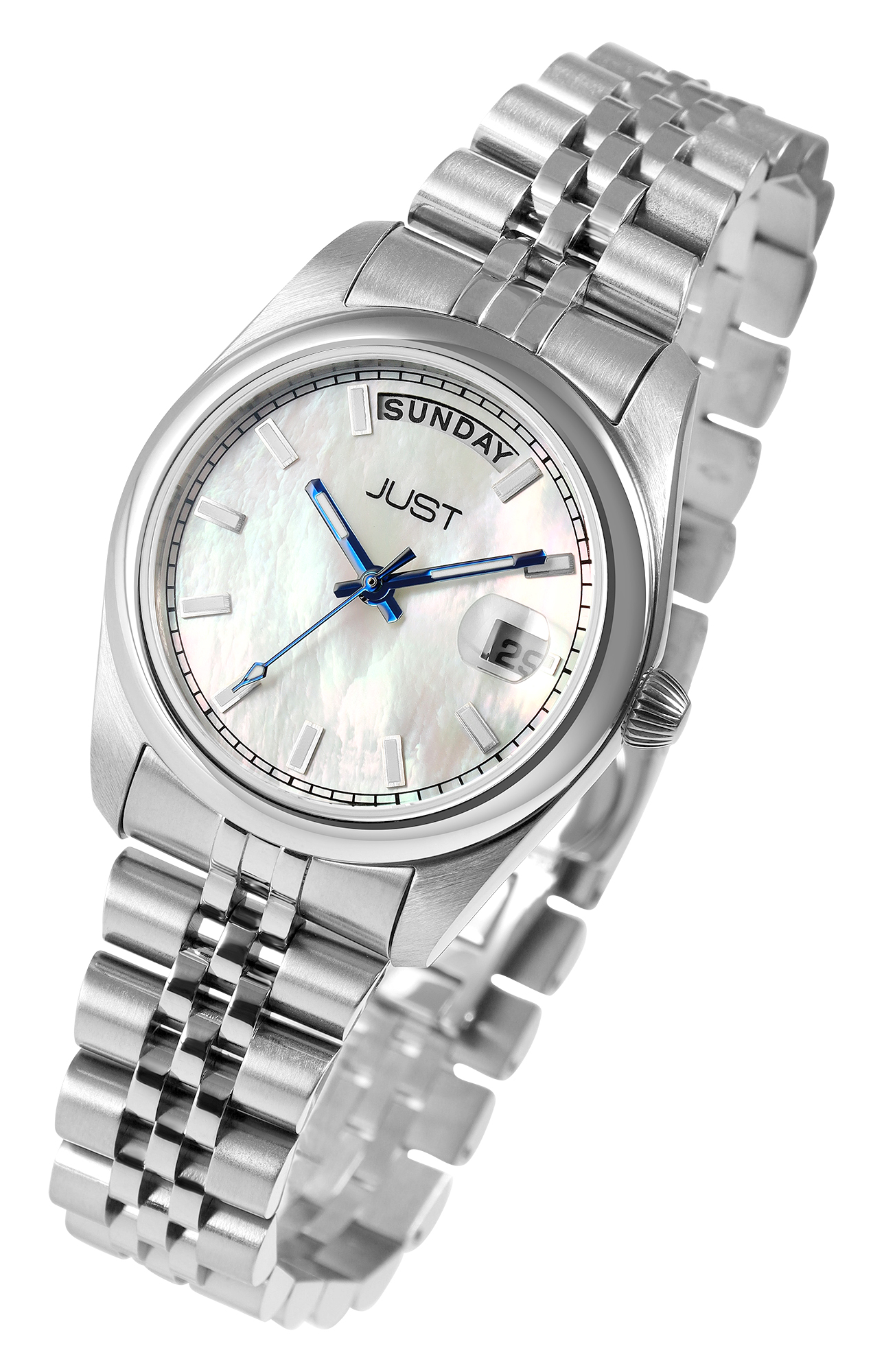 Productinformatie "JUST Damenuhr "Felicitas" mit Edelstahlarmband, 5ATM, silberfarben + perlmutt"