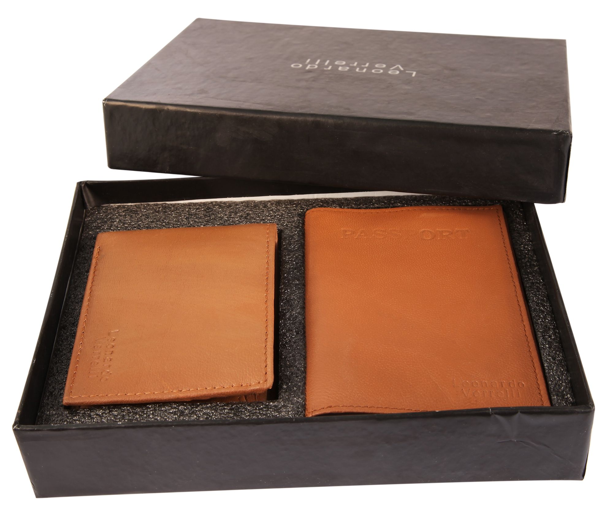 Productinformatie "Leonardo Verrelli Geschenkset mit Geldbörse und Ausweismappe, braun"