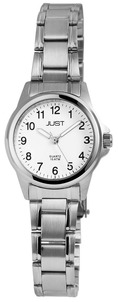 Productinformatie "Just Edelstahl Damenarmbanduhr, silberfarben, weißes ZB"