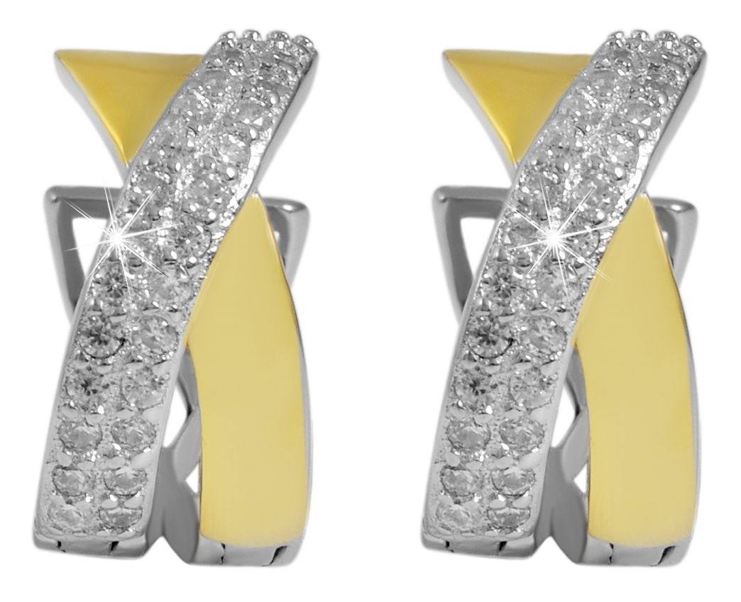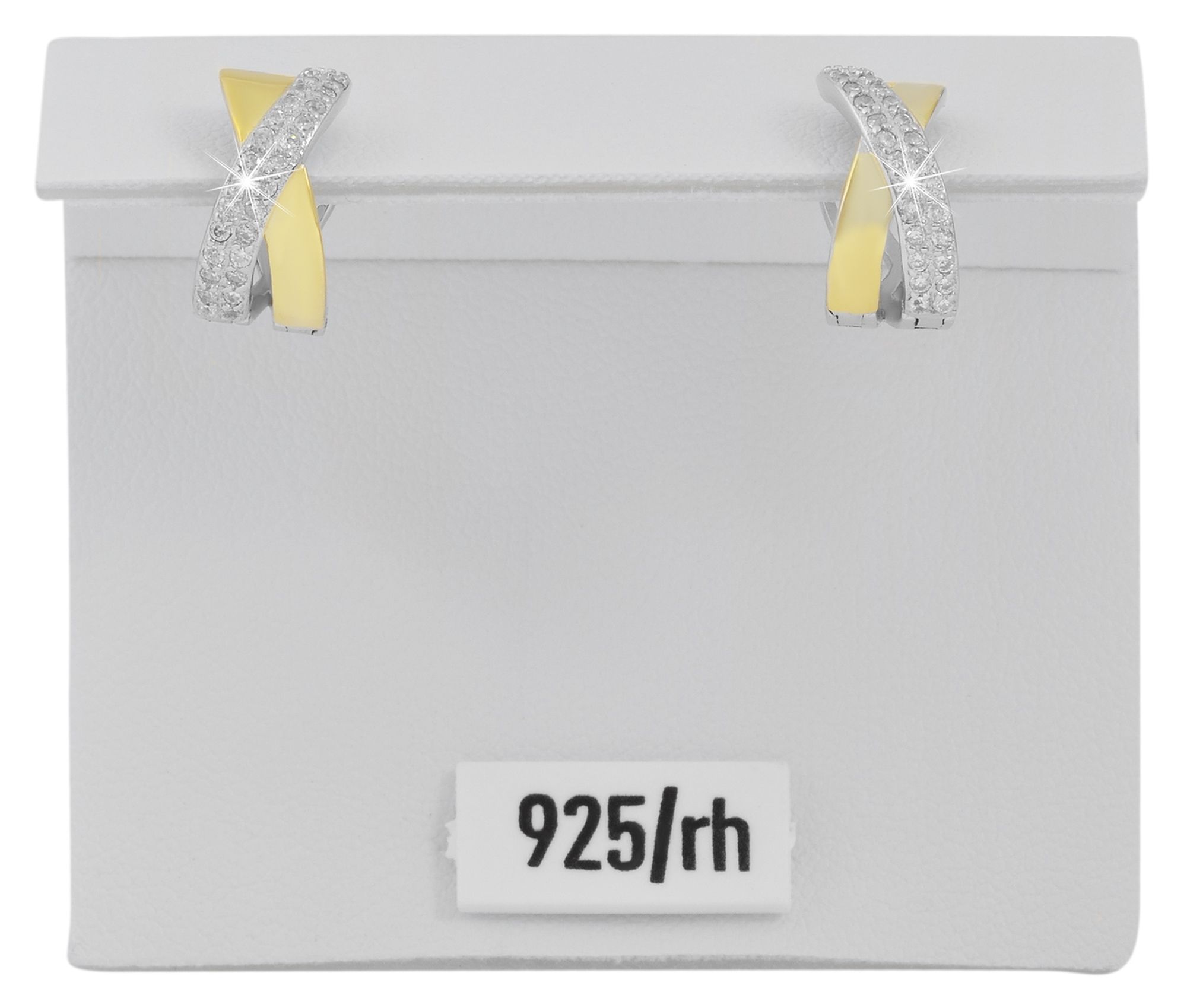 Productinformatie "925/- Echt Silber Klapp-Creolen "Suna" mit Zirkoniabesatz, bicolor, 925/rhodiniert"