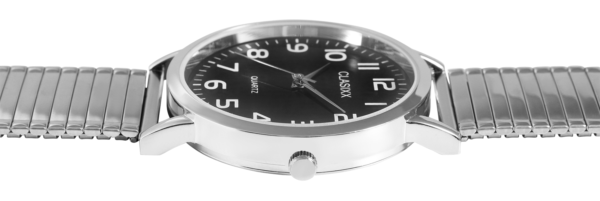 Productinformatie "CLASIXX Herrenuhr mit Edelstahlzugarmband, silberfarben/schwarz"