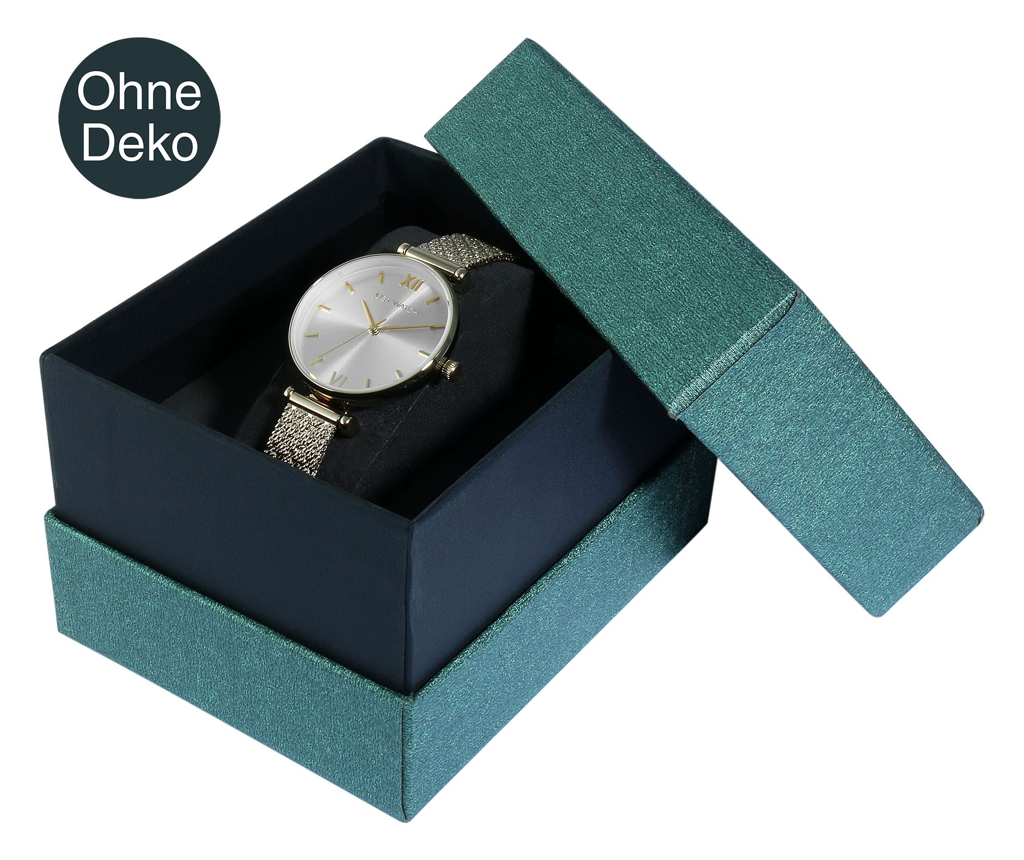 Productinformatie "Uhrenbox mit abnehmbarem Deckel, Pappe, 11 x 9 x 7 cm, dunkelgrün"