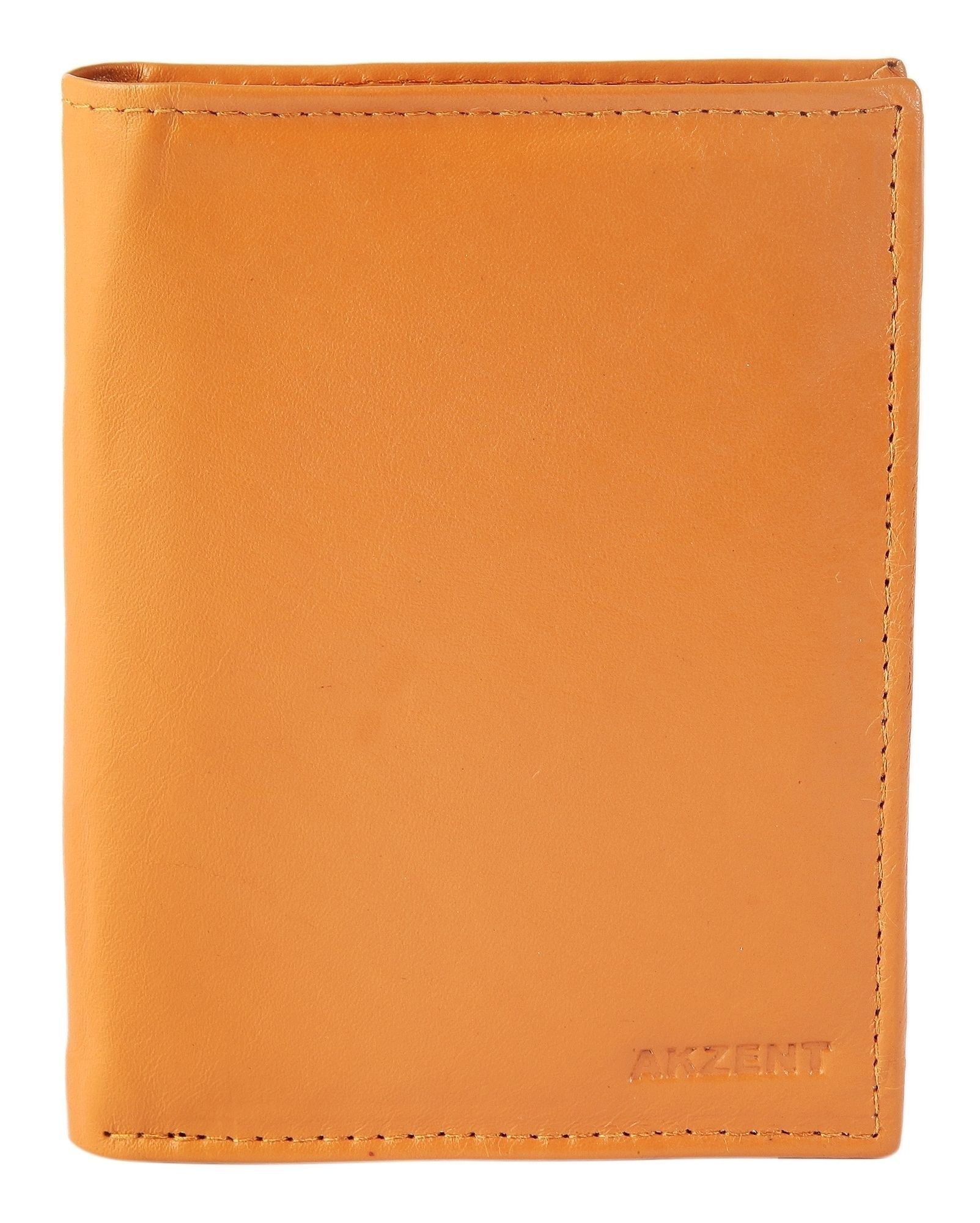 Akzent Herren Geldbörse aus Echtleder. Die Hochformat-Geldbörse ist 9 cm breit und 12 cm hoch. Die Farbe ist Hellbraun. Sie verfügt über 2 Geldscheinfächer, ein Kleingeldfach, 10 Kreditkartenfächer, ein transparentes Kreditkartenfach und ein transparentes Ausweisfach.