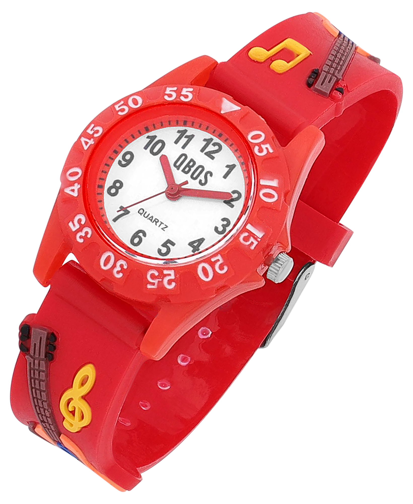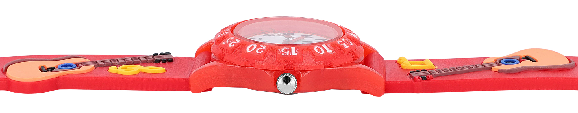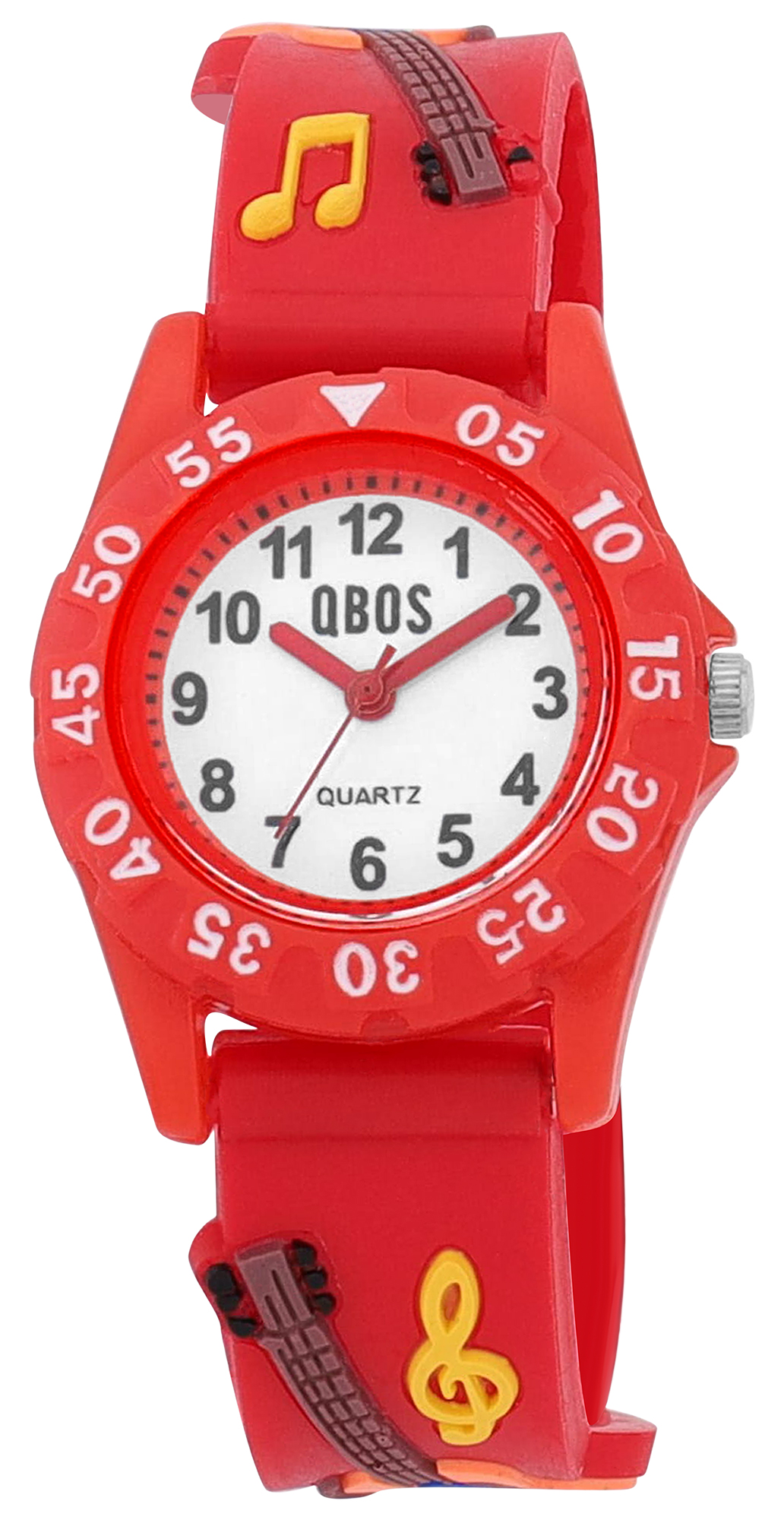 Qbos Kinderuhr mit Silikonband, bunt, Motiv Gitarre, Ø 28 mm, rot