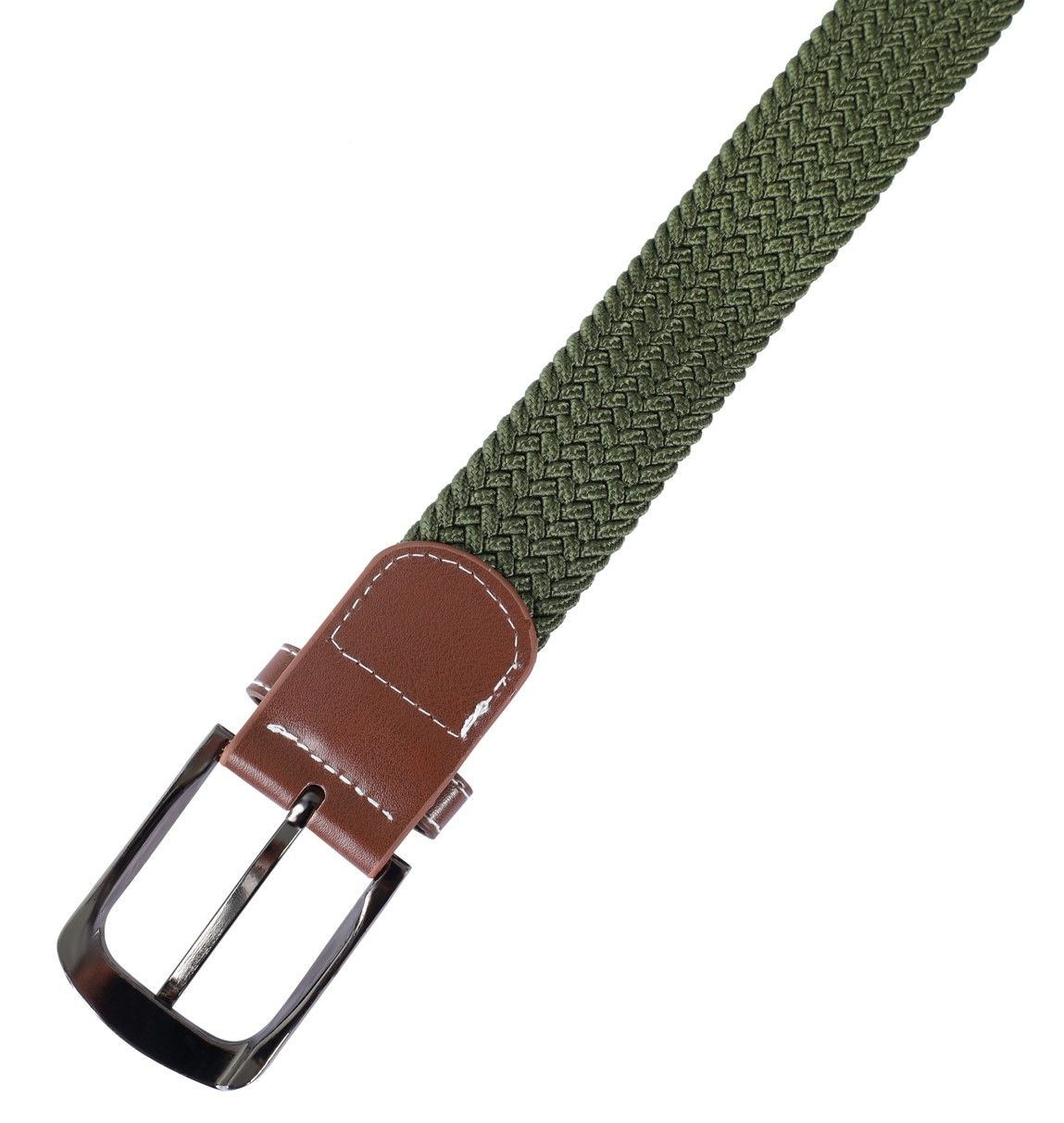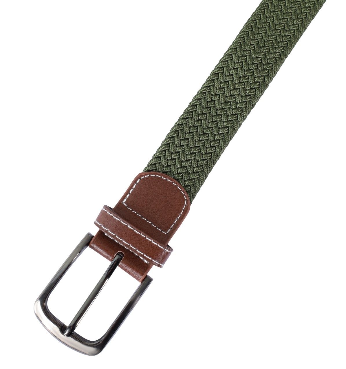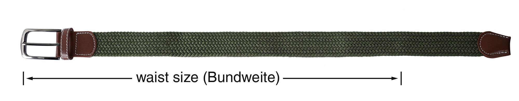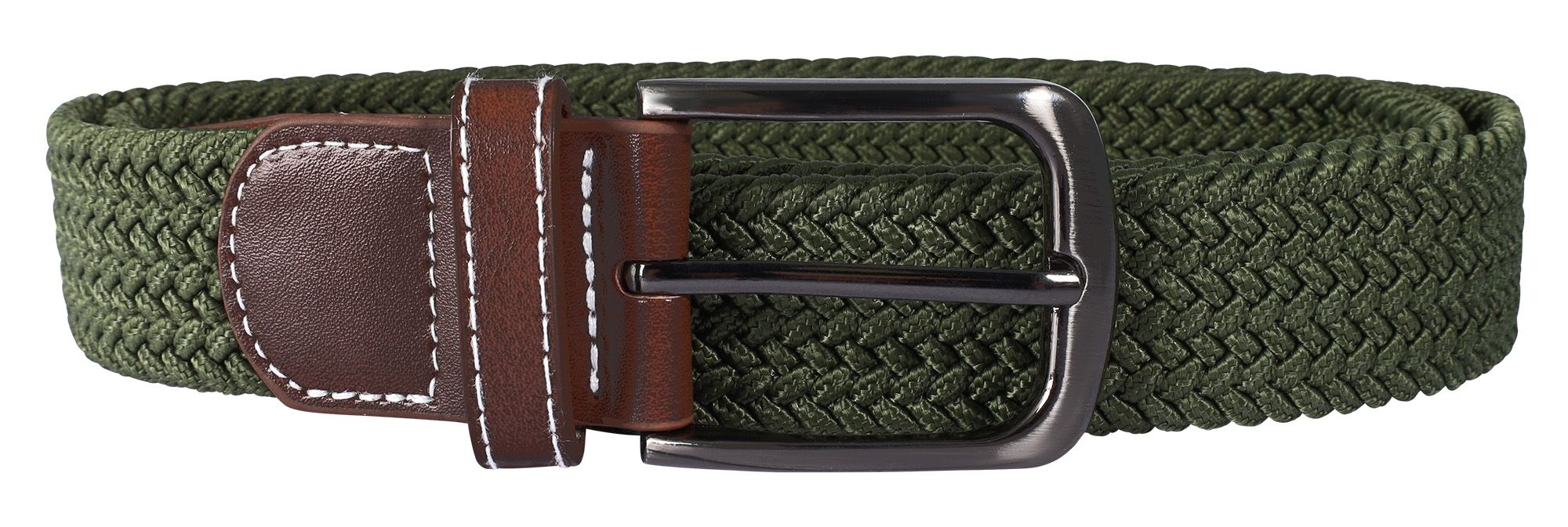 Der Unifarbene Textilgürtel mit Flechtmuster in dunkelgrün, überzeugt mit einer sportiven Optik. Beide Gürtelenden sind mit braune Lederimitat Applikationen versehen, die für eine elegante Note sorgen. Hergestellt aus hochwertigem Textilmaterial, bietet unser Flechtgürtel einen angenehmen Tragekomfort. Der Gürtel besitzt eine robuste Dornschließe aus Metall, die Sie genau dort schließen können, wo es für Sie am bequemsten ist. Bei unserem Flechtgürtel haben sie verschiedene Längenoptionen 100 cm, 110 cm und 120 cm, er hat eine Breite von 3,2 cm sowie einer Stärke von 0,5 cm, somit ist für jeden die passende Größe dabei. Er ist aufgrund des Materials sehr robust, langlebig und reißfest. Ein toller Freizeitgürtel aus Textil für den sportlichen Look.