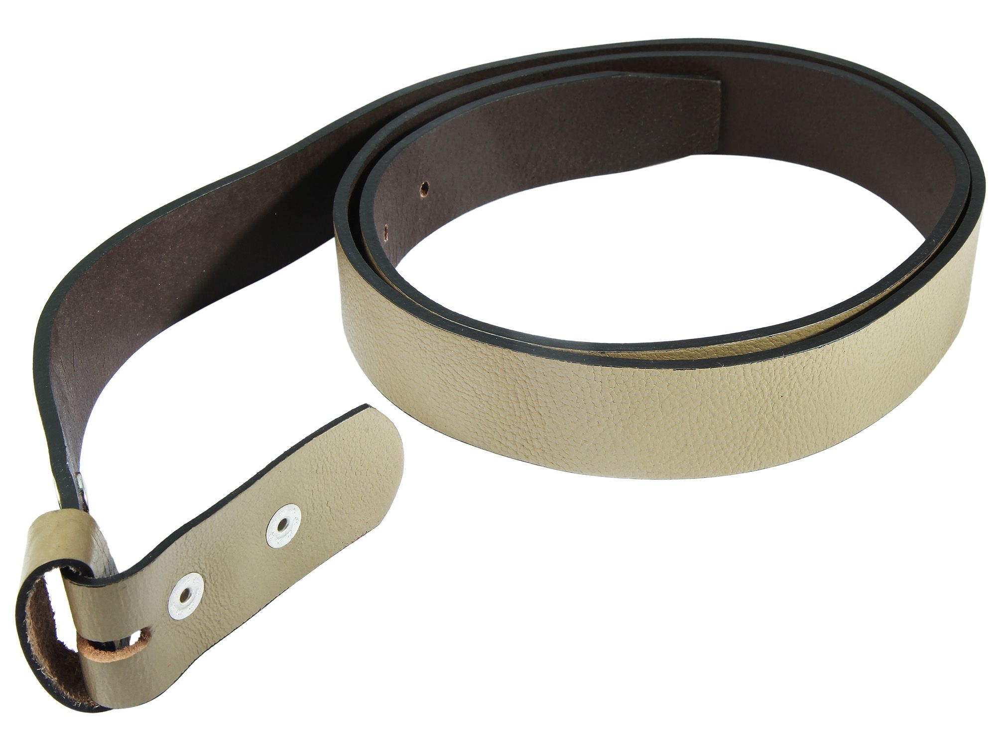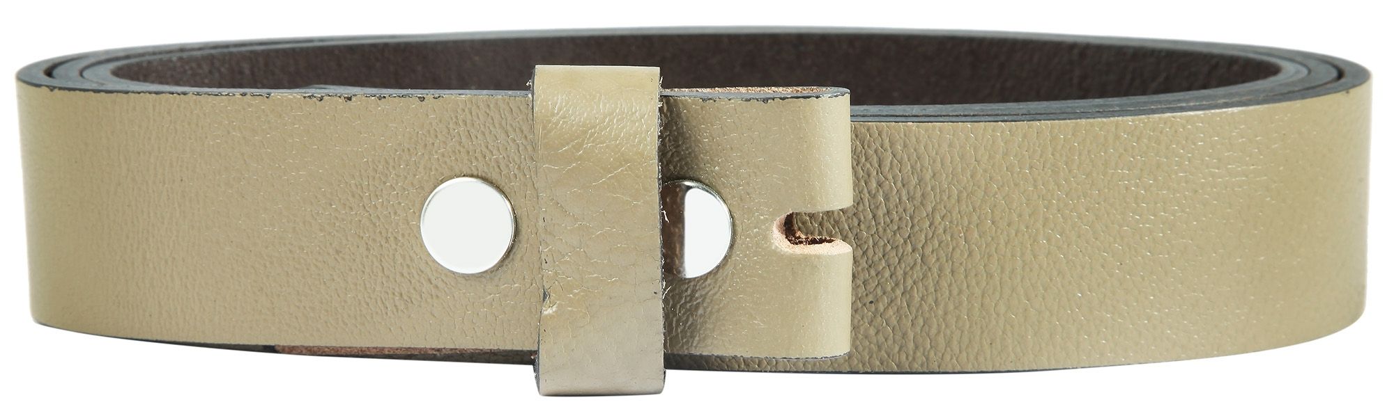 De lichtbruine riem van het merk Leonardo Verrelli is gemaakt van echt leer en heeft een gladde afwerking met een individuele en kenmerkende nerf. Hij is verkrijgbaar in verschillende taillematen, is 3,4 cm breed en 0,4 cm dik. Dit maakt de moderne damesriem veelzijdig, omdat hij gemakkelijk door de conventionele riemlussen kan worden gehaald. De gaten zitten 2 cm uit elkaar. Een bijzonder kenmerk is dat de riem geen gesp heeft, omdat er verschillende verwisselbare gespen mogelijk zijn. Deze kunnen snel en eenvoudig worden verwisseld met behulp van twee drukknopen. Deze optie maakt deze riem tot een geweldige vrijetijdsriem met een individueel uiterlijk. Hij is zeer robuust, duurzaam en scheurbestendig dankzij het hoogwaardige materiaal. De maat van de riem wordt aangegeven in taillebreedte, die 15 cm korter is dan de totale lengte.
