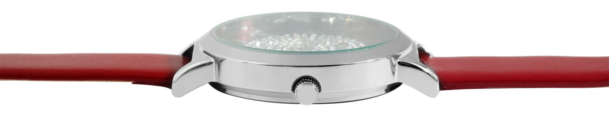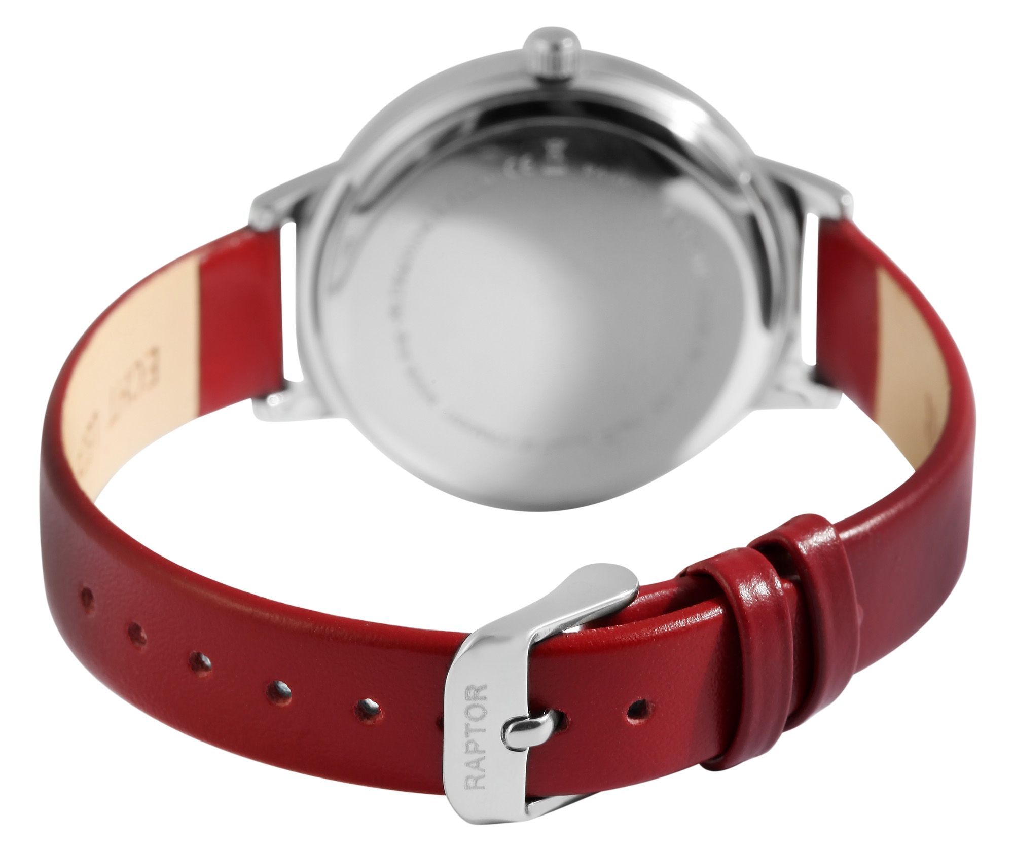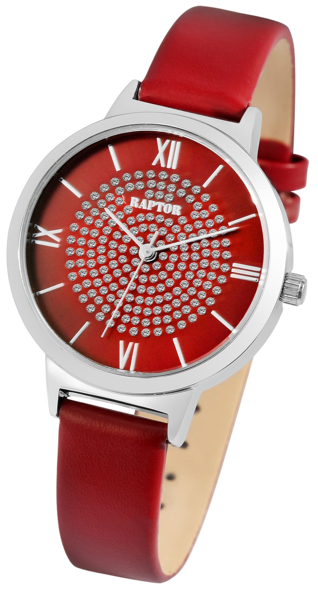 Productinformatie "Raptor Damenuhr "Tess" mit Echtlederarmband, dunkelrot/silberfarben"