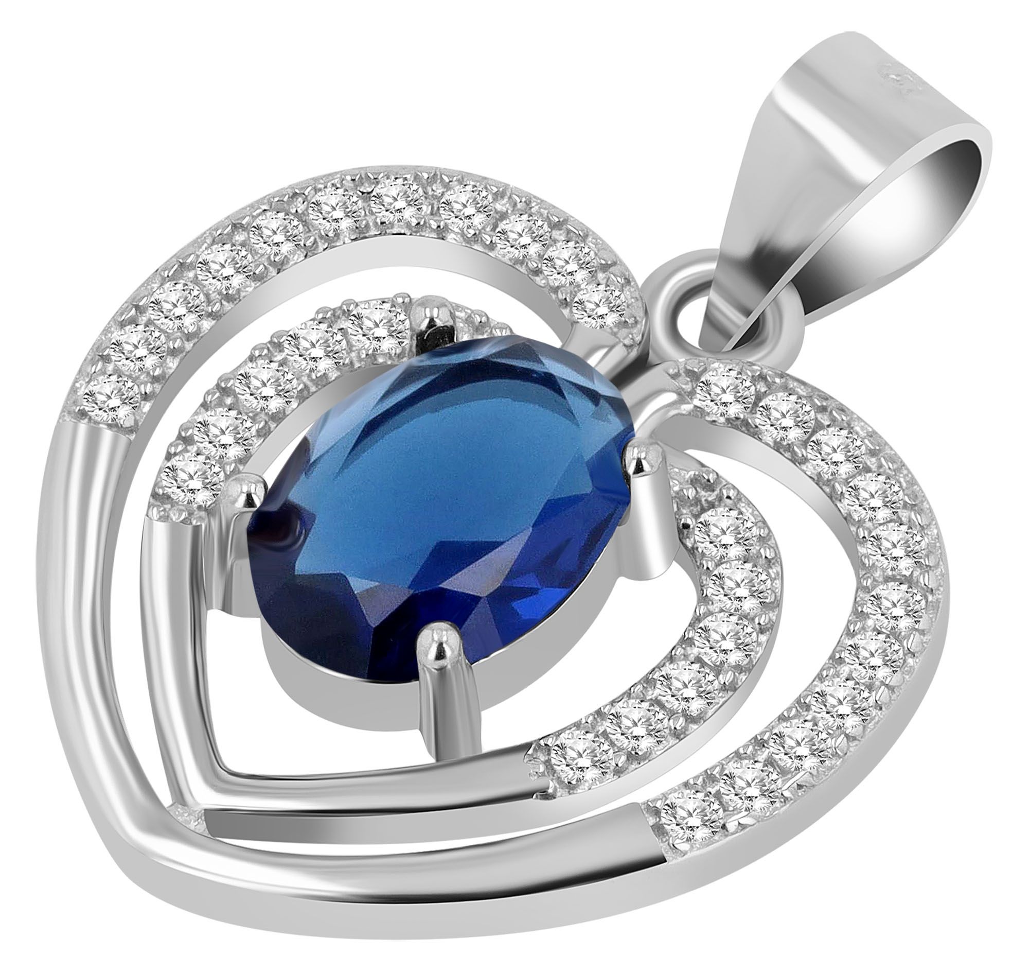 Productinformatie "Echt Silber Anhänger Herz "Tilla" mit Zirkonia rhodiniert, blau"