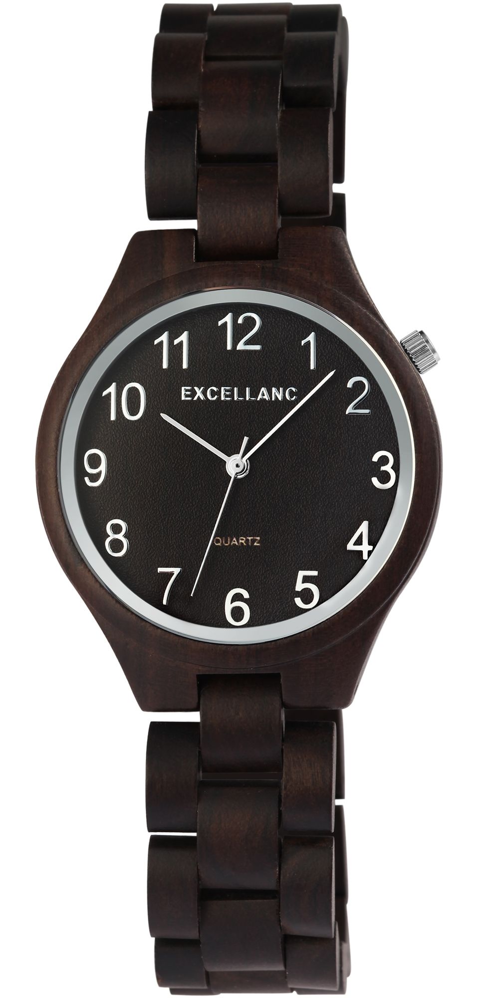 Productinformatie "Excellanc Damen Holzarmbanduhr aus Schwarzholz mit Edelstahlfaltschließe"