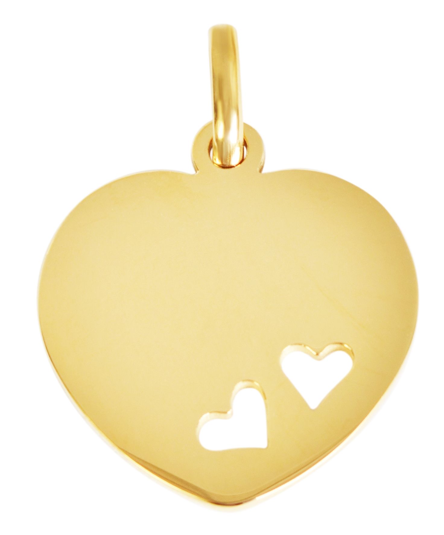 Der goldfarbene Gravuranhänger der Marke Akzent ist aus Edelstahl gefertigt und hat die Form eines Herzens. In das Herz wurden seitlich zwei kleine Fräsungen verarbeitet, die auch die Form eines Herzens haben. Die restliche Fläche des Anhängers kann sowohl auf der Vorder- als auch auf der Rückseite mit Gravuren aller Art versehen werden. Die Oberfläche der Gravurplatte ist hochglanzpoliert. Dank der ovalen Öse lässt sich der Anhänger beliebig an verschiedenen Ketten anbringen. Die Maße ergeben sich aus einer Länge von 26 mm, einer Breite von 25 mm und einer Materialstärke von 2 mm. Durch das robuste Material und die hochwertige Verarbeitung verspricht der Schmuckanhänger eine lange Lebensdauer. Zudem eignet er sich perfekt als personalisiertes Geschenk für besonderer Erinnerungen oder Personen.