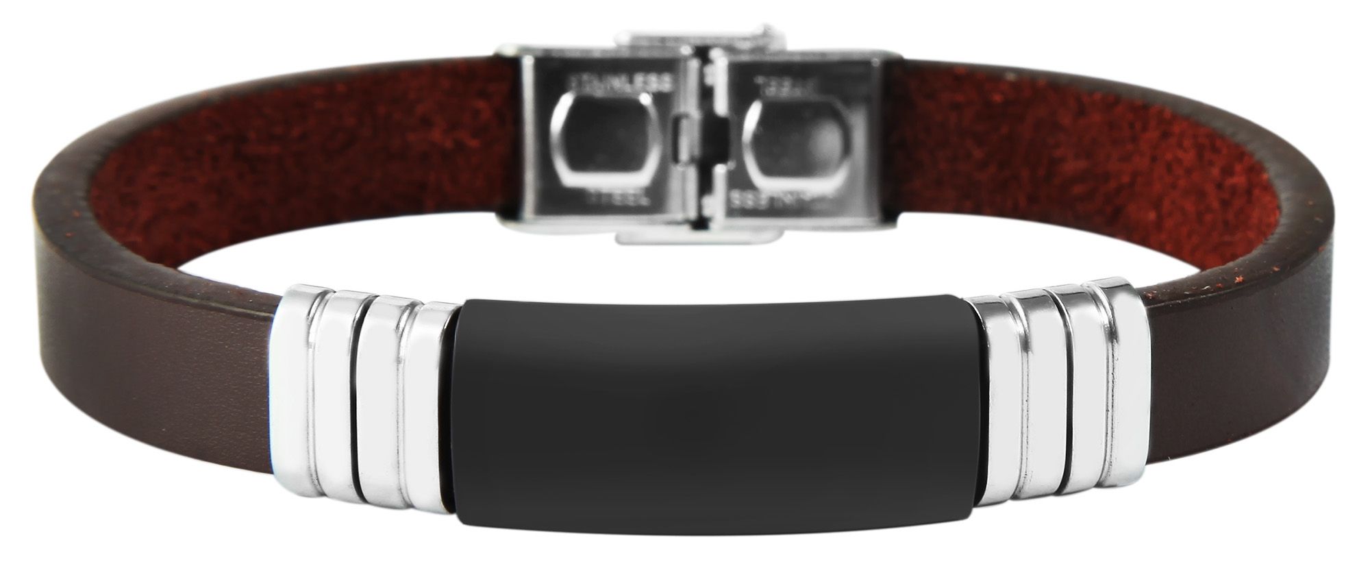 Productinformatie "Akzent Echtlederarmband mit Edelstahlelement, Gravurplatte, dunkelbraun"