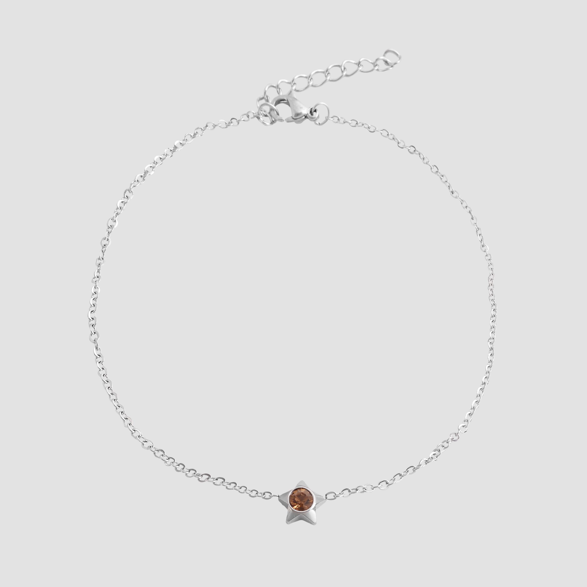 Gefertigt aus strapazierfähigem Edelstahl ist das Fußkettchen "Alara" nicht nur anmutig, sondern auch langlebig und resistent gegen Anlaufen. Das hochwertige Material garantiert, dass dieses Schmuckstück auch bei täglichem Gebrauch seine Schönheit bewahrt. Das Fußkettchen misst 24 cm in der Länge und bietet mit einer zusätzlichen 3 cm Verlängerung eine individuelle Anpassung für optimalen Tragekomfort. Mit einer Stärke von 2 mm präsentiert sich das Kettchen filigran und leicht, während der sichere Karabinerhaken eine zuverlässige Befestigung am Knöchel ermöglicht. In der Mitte wird die Kette durch einen Stern mit Besatz unterbrochen. Dieses Detail verleiht dem Schmuckstück eine dezente, aber wirkungsvolle Ausstrahlung.