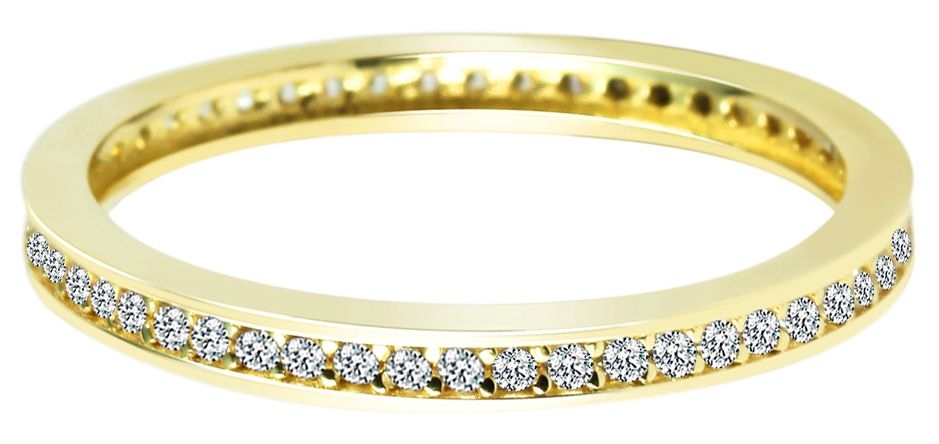 Der feminine Damenring wurde aus hochwertigem 333/- Gelbgold hergestellt und präsentiert sich in einem dezenten und unaufdringlichen Design mit einem polierten Oberflächenfinish. Die Ringschiene ist rundherum mit funkelnden Zirkoniasteinen verziert. Dabei bildet der weiße Besatz einen stilvollen und ansprechenden Kontrast. Der Ring hat die Größe 50, eine Breite von 2 mm und eine Stärke von 1,5 mm. Durch das elegante und zeitlose Design glänzt dieses edle Schmuckstück zu jedem Outfit. Zudem eignet es sich ideal zum Verschenken, denn das hochwertige Material und die aufwendige Verarbeitung lassen diesen Ring zu einem ewigen Begleiter werden.