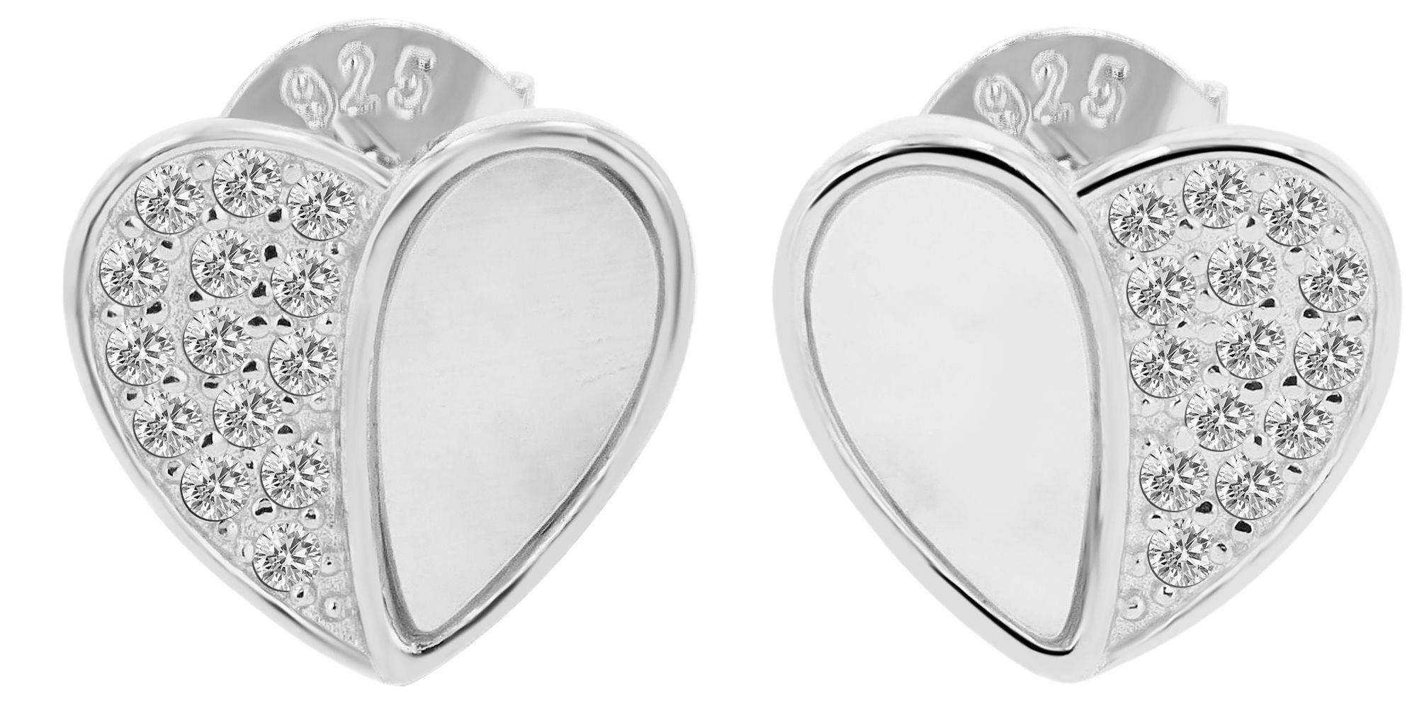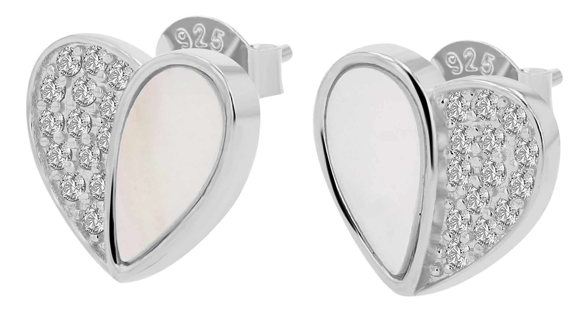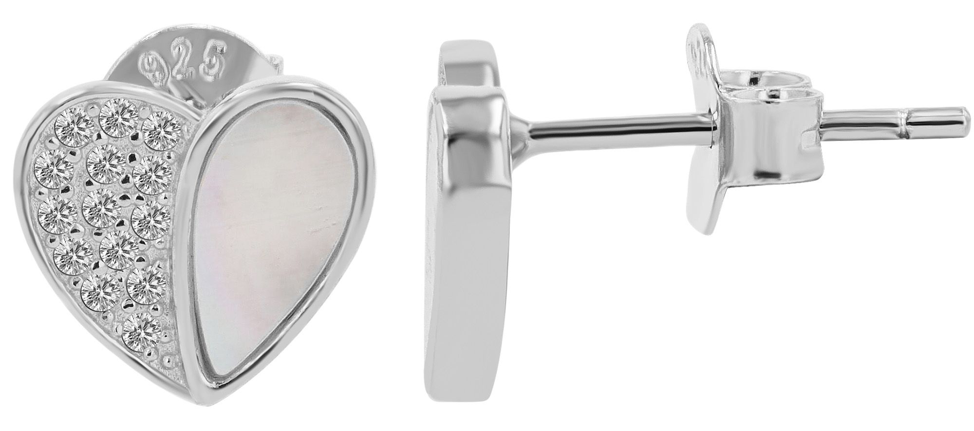 Productinformatie ""Aveline" 925/- Echt Silber Ohrstecker - Herz, Perlmutt & Zirkoniabesatz, silberfarben rhodiniert"