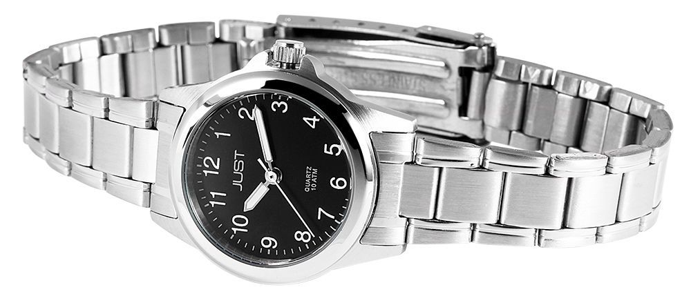Productinformatie "Just Edelstahl Damenarmbanduhr, silberfarben, schwarzes ZB"