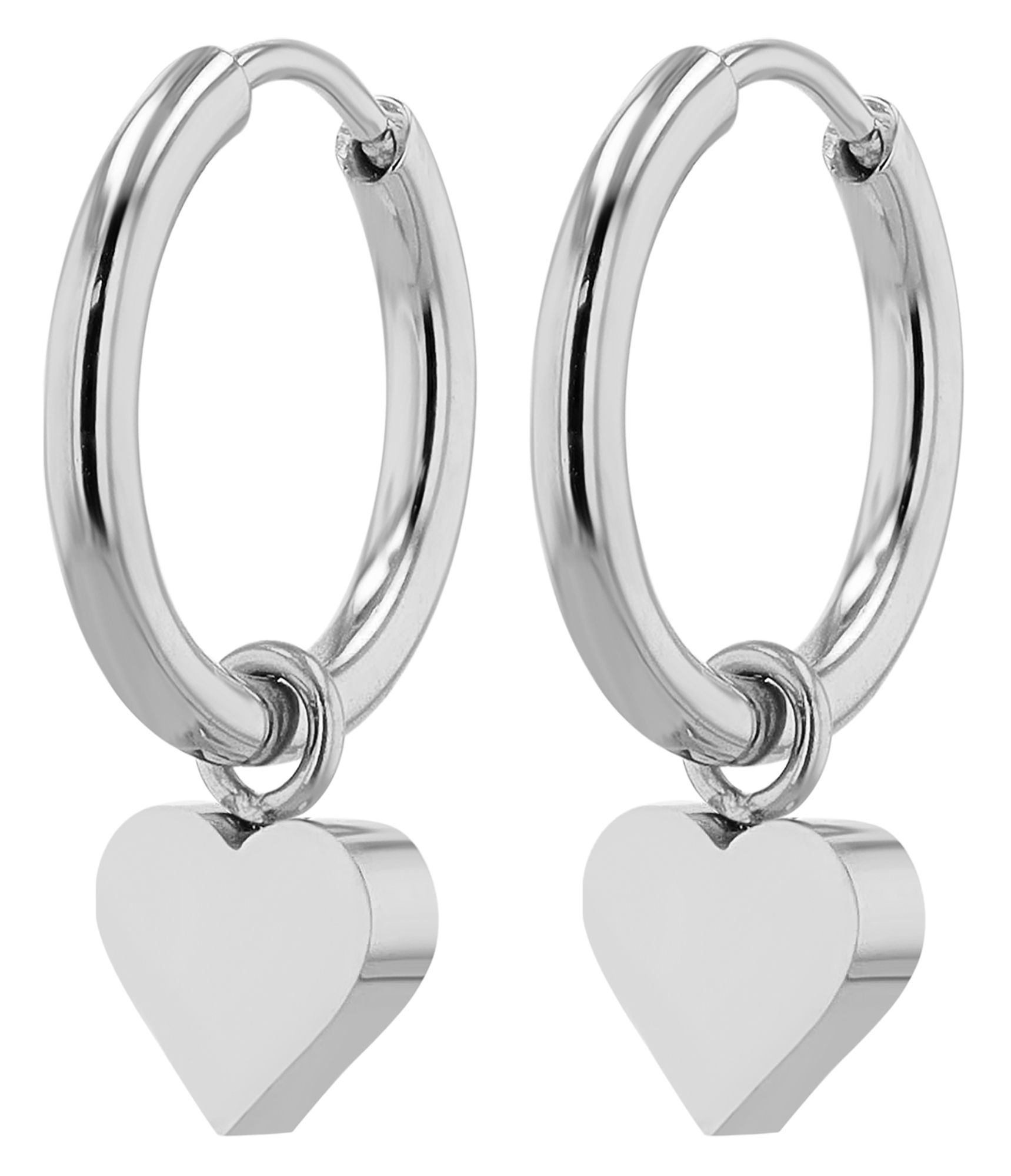 Productinformatie ""Samira" Edelstahl Creole mit Herz Anhänger (abnehmbar), silberfarben"