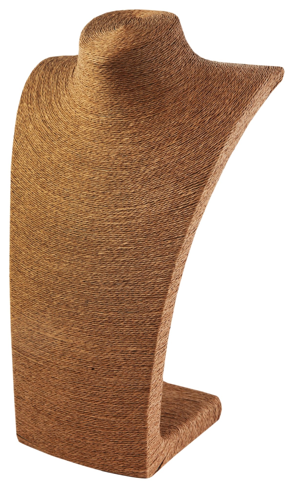 Der Schmuckhalter in schlichter Büstenform wurde aus Bastfaser hergestellt, diese Fasern sorgen für einen hochwertigen und dekorativen Look. Die Büste ist hellbraun und eignet sich hervorragend zur Präsentation von Schmuckstücken. Ob auf der Ladentheke, im Schaufenster oder Ausstellungsraum, die Büste macht überall eine gute Figur. Die Maße des Aufstellers ergeben sich aus einer Länge von 36 cm, einer Breite von 23 cm und einer Stärke von 7 cm.