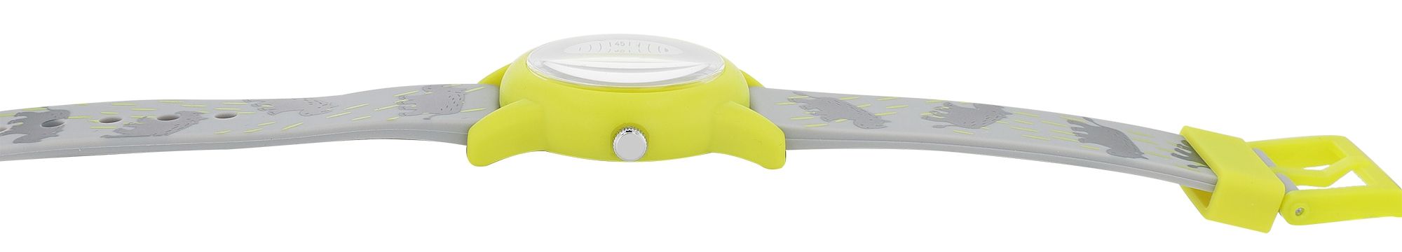 Entdecken Sie in unserem Uhren Großhandel die aufregende Welt der Zeitmessung mit unserer Q&Q - by Citizen Watch Co. LTD Kinderuhr, mit der die Kleinsten nicht nur die Zeit im Blick behalten, sondern auch ein Lächeln auf das Gesicht gezaubert bekommen. Diese analoge 3-Zeiger Uhr ist ein wahrer Hingucker. Das Band der Armbanduhr ist mit verspielten Nashörnern verziert. Die Kombination aus Grün- und Grautönen verleihen der Uhr eine aufregende und kindgerechte Optik.