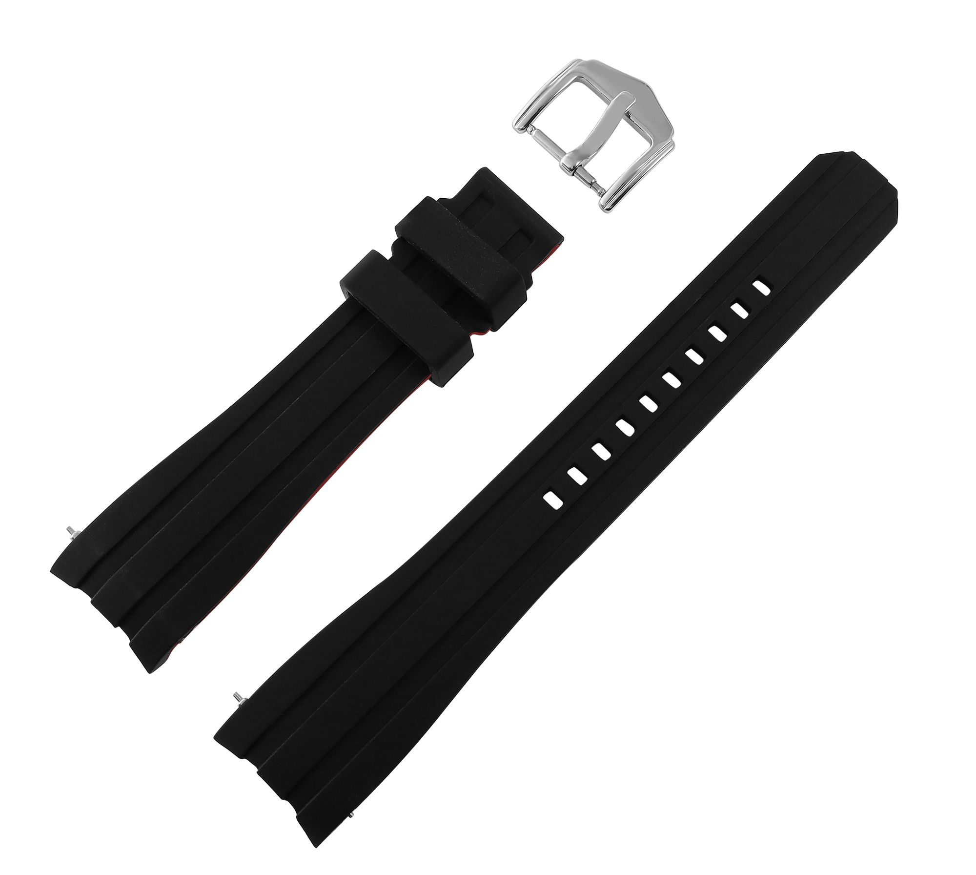 Productinformatie "Schnellwechselarmband für Uhren, Silikon, Dornschließe, schwarz/rot, 22 mm"
