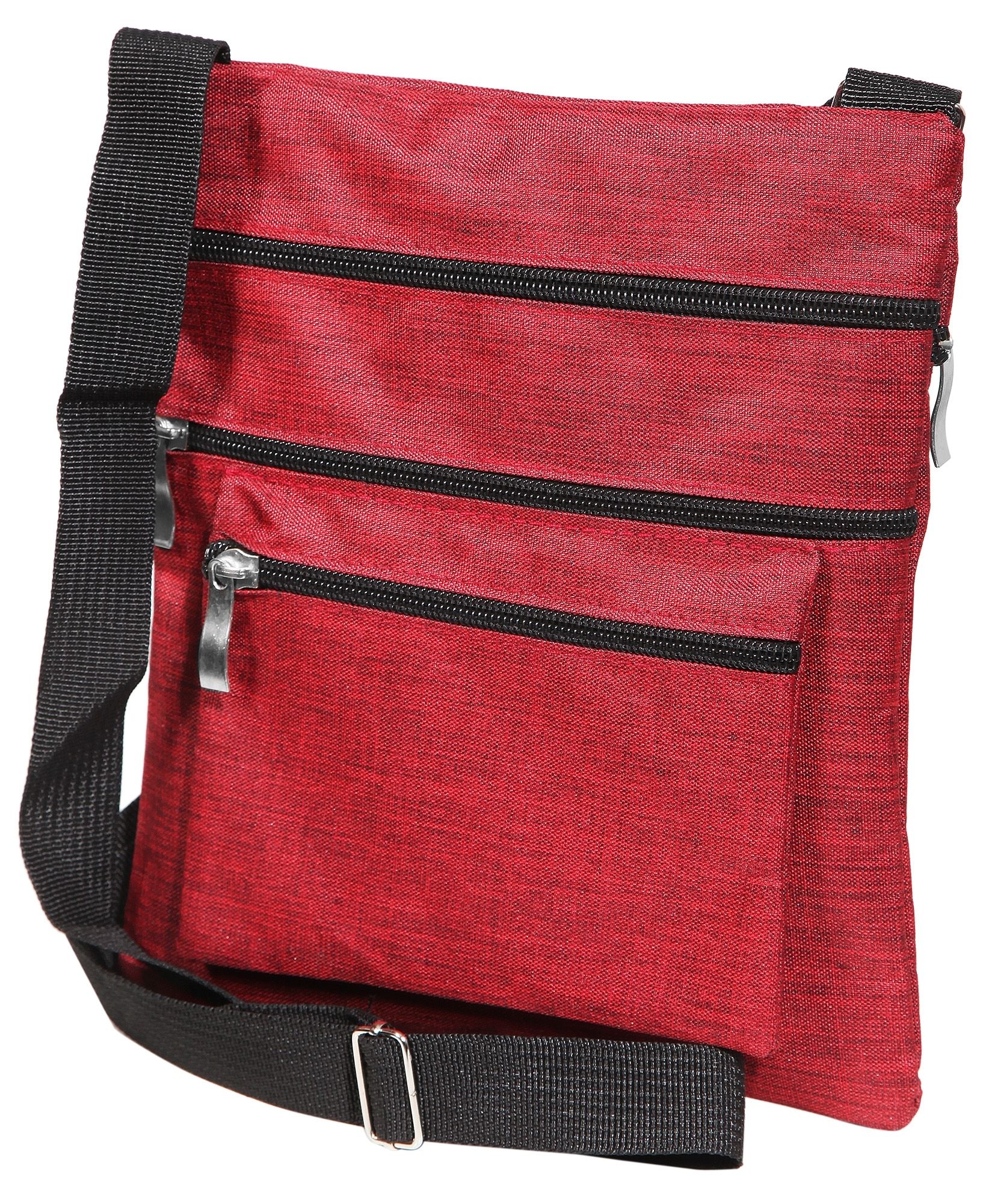 Die rote Handtasche ist aus Textil gefertigt und ist dadurch sehr belastbar und stabil. Die Vorderseite ist mit zwei großen Reißverschlussfächern und einem kleineren Fach ausgestattet. Zusätzlich verfügt die Handtasche über ein weiteres Fach auf der Rückseite, welches ebenfalls mit einem Reißverschluss ausgestattet ist. Die Tasche ist ideal um alle wichtigen Gegenstände zu verstauen, ob auf Reisen oder im Alltag - sie ist ein toller Gefährte und ein modischer Begleiter. Desweiteren verfügt die Tasche über einen Umhängegurt, welcher von der Länge individuell einstellbar ist. Sie hat eine Länge von 24 cm, eine Breite von 20 cm und eine Materialstärke im ungefüllten Zustand von 1,0 cm. Somit hat sie eine optimale Größe für jede Gelegenheit.