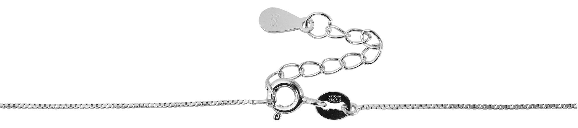 Diese Halskette aus hochwertigem 925er Sterlingsilber ist ein wunderschönes Schmuckstück, das garantiert Aufmerksamkeit erregt. Die 42 cm lange Ankerkette ist mit einem Mond-Anhänger verziert, der mit einem funkelnden Zirkoniastein geschmückt ist. Dank eines 3 cm langen Verlängerungskettchen ist es möglich, in der Länge zu variieren um die Kette so jedem Outfit und Träger anpassen zu können. Der Kettenanhänger hat eine Größe von 15 x 13 mm und wird beim Tragen zum absoluten Blickfang. Gefertigt aus rhodiniertem Sterlingsilber behält dieses Schmuckstück das Aussehen extrem lange bei und ist zudem noch äußerst hautfreundlich. Lassen Sie sich von dem Charme dieser Silberkette mit Mondanhänger verzaubern!
