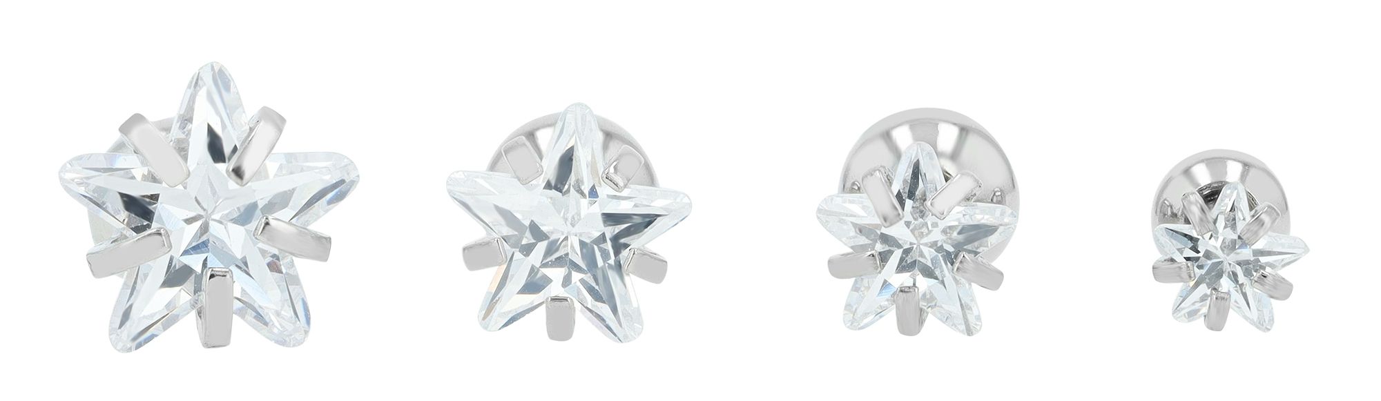 Productinformatie "Akzent Edelstahl Ohrstecker, Stern, 4er Set, Stabstärke 1,2 mm / Stablänge 6 mm / Ø 3, 4, 5 und 6 mm"