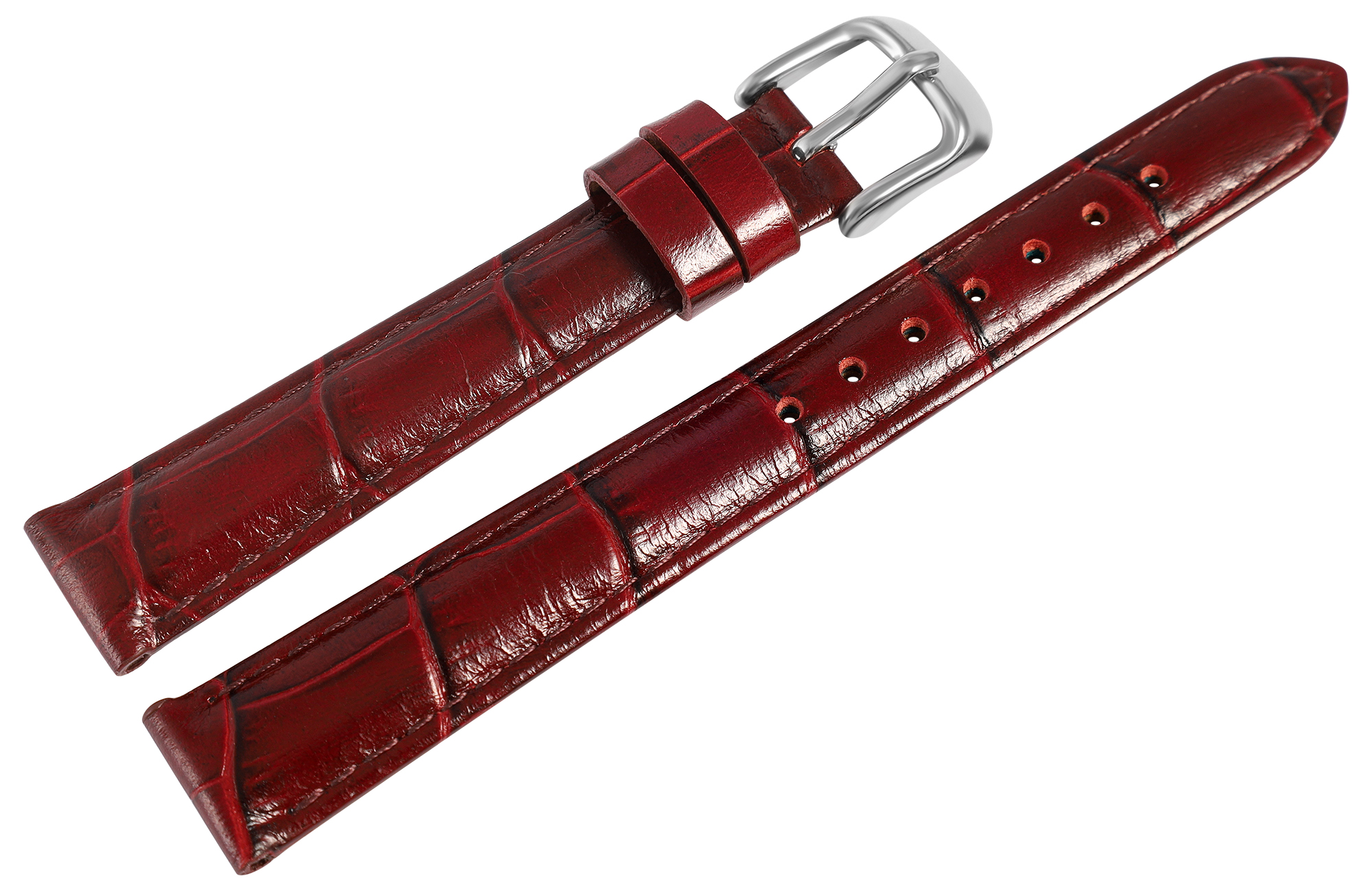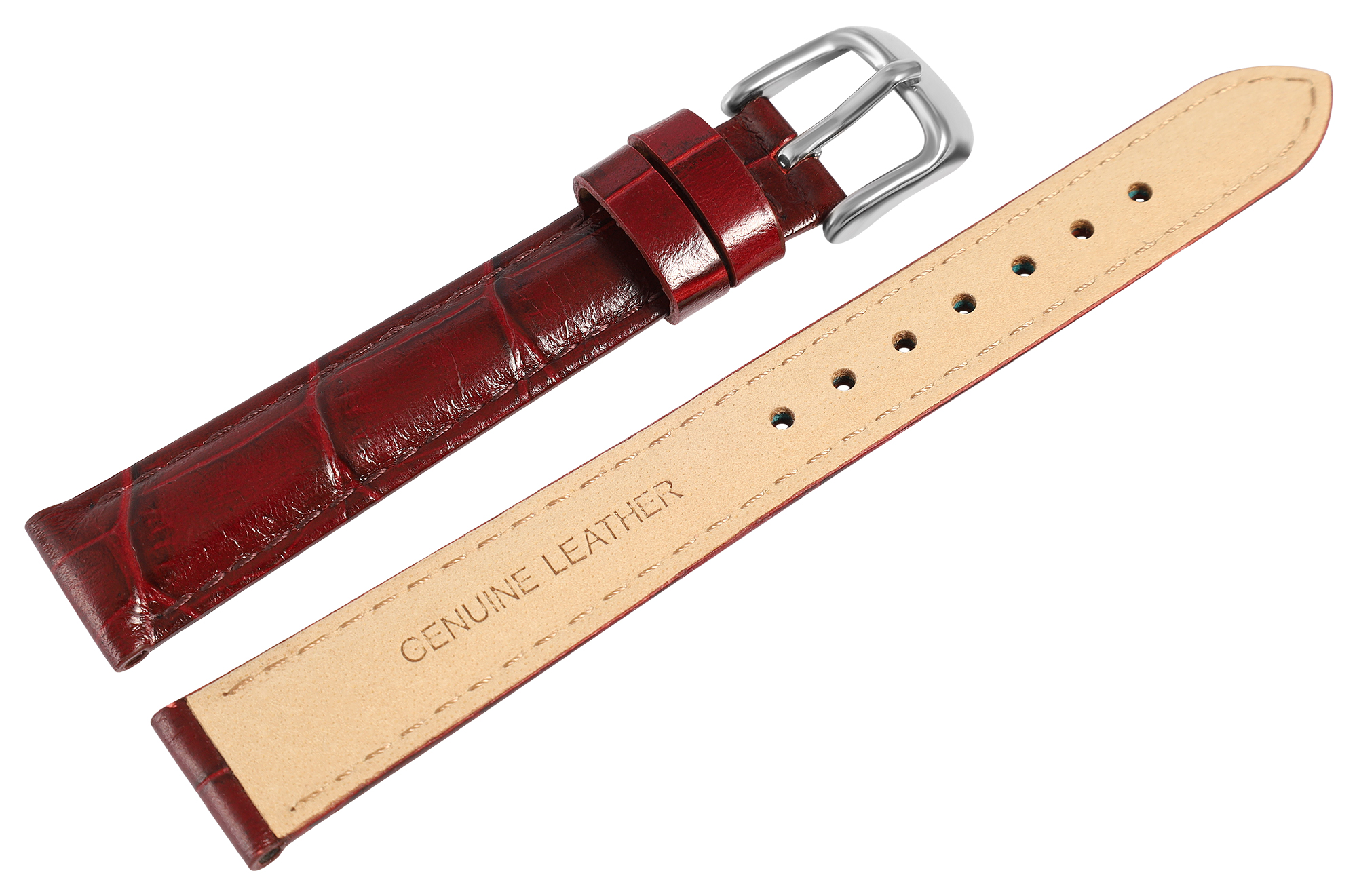 Productinformatie "Uhrenarmband aus Echt Leder, Kroko-Optik, bordeauxrot, 14 mm"