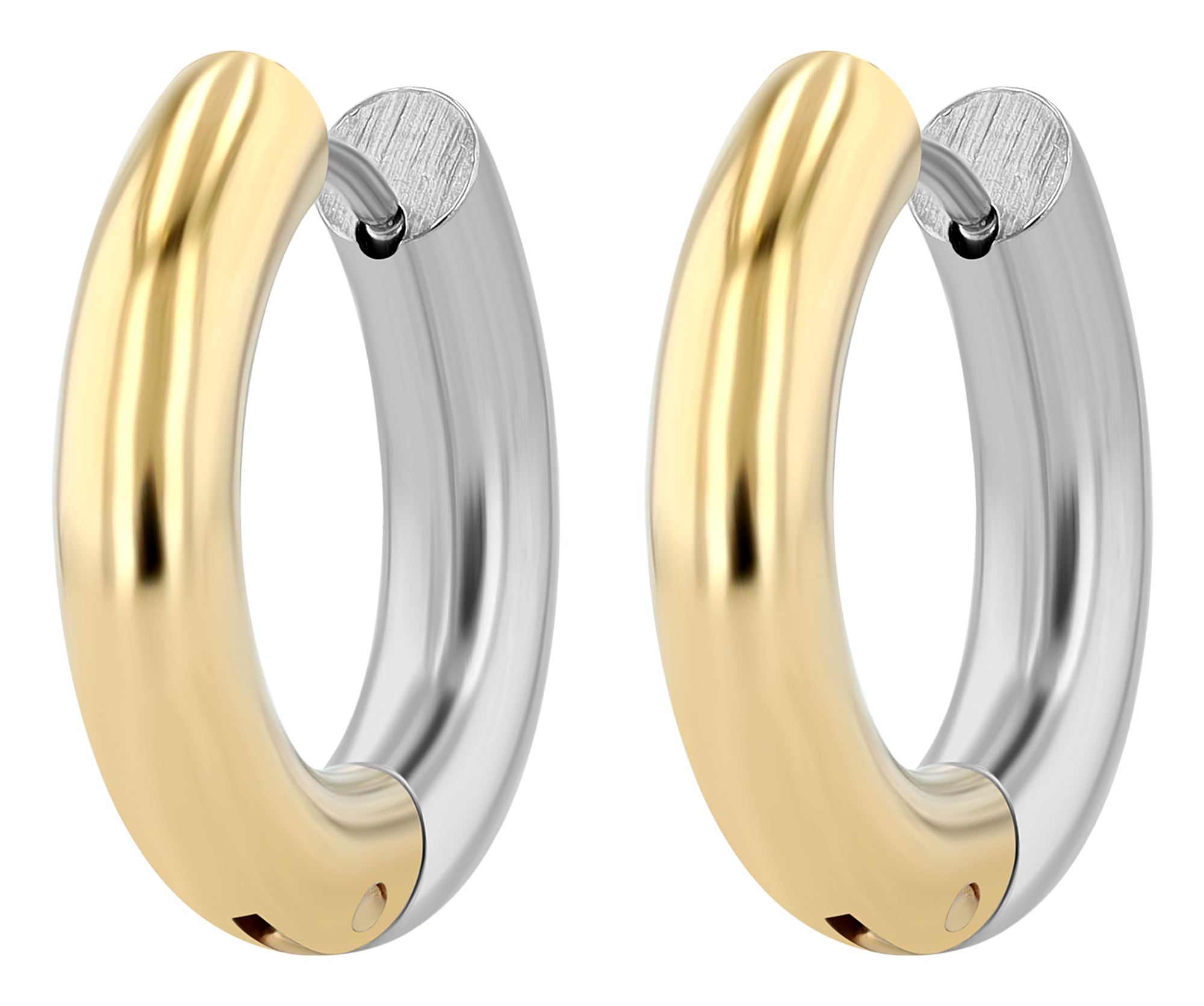 Diese runde Creole aus hochwertigem Edelstahl besticht durch ihre elegante Bicolor-Optik in silberfarben und goldfarben. Mit einem Durchmesser von 12 mm und der praktischen Klappschließe bietet sie sicheren Halt und hohen Tragekomfort. Ihre schlicht-elegante Gestaltung macht sie zu einem wahren Allrounder, der sich jedem Outfit und Anlass anpasst. Durch ihre zurückhaltende Raffinesse eignet sich dieses Schmuckstück sowohl für den täglichen Gebrauch als auch für besondere Gelegenheiten. Sie verleiht dem Look eine subtile Eleganz und bietet gleichzeitig die Möglichkeit, immer wieder neue Akzente zu setzen. Eine Accessoire, das durch seine Wandelbarkeit und schlichter Schönheit überzeugt.