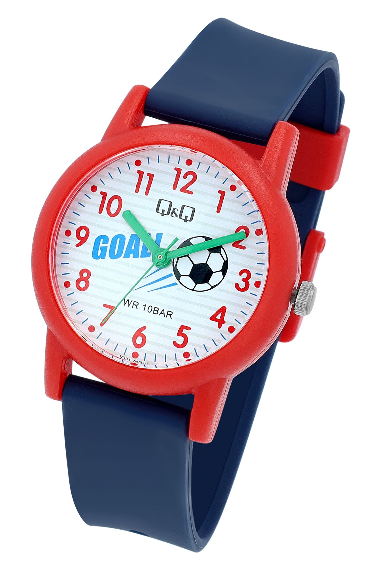 Mit einer Wasserdichtigkeit von 10 bar ist diese Armbanduhr bereit für alle Abenteuer, sei es beim Spielen auf dem Rasen oder bei einem Sprung ins kühle Nass. Sie müssen sich keine Sorgen um Wasserspritzer machen – diese Uhr hält stand. Das hochwertige Quarzuhrwerk sorgt für präzise Zeitmessung und bringt dem Kind spielerisch das Konzept der Zeit näher. Diese Q&Q - by Citizen Watch Co. LTD Kinderuhr ist nicht nur ein Zeitmesser, sondern auch ein Begleiter für spannende Spiele und aufregende Matches auf dem Spielfeld.
