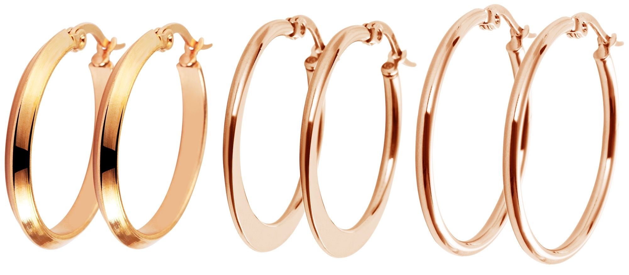 Productinformatie ""Sheila" Akzent Creolen aus Edelstahl, 3er Set, Ionenplattiert, roségoldfarben"